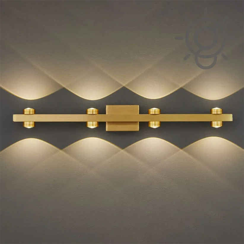 "Transform your space with our LED Luxurious Indoor UP/Down Picture Vanity Wall Light. Crafted with a sleek aluminum body and adorned with 4 Up and 4 Down Luxurious Gold lights, it exudes elegance. The warm white glow creates a welcoming ambiance, ideal for accentuating artwork or mirrors. With energy-efficient LED technology, it's both stylish and cost-effective. Elevate your décor effortlessly with this sophisticated lighting solution."