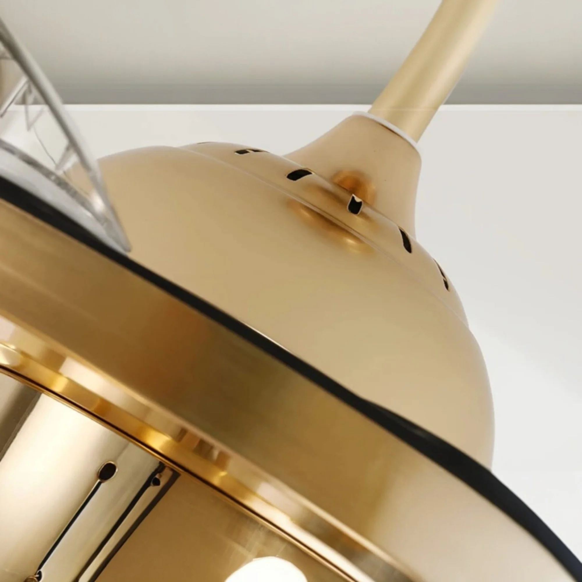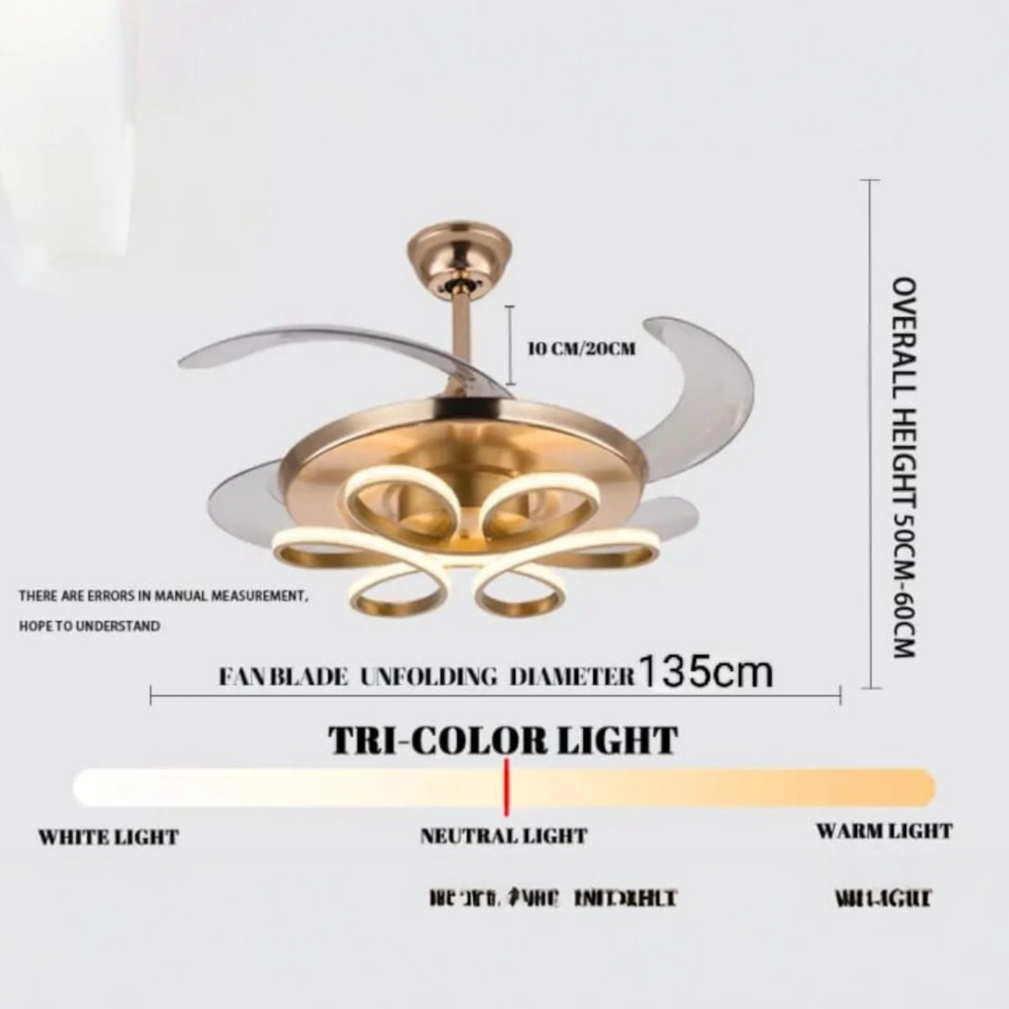 Golden Flower 4 Transparent Retractable Fan Blade Chandelier Fan Light - Trichromatic (Golden)