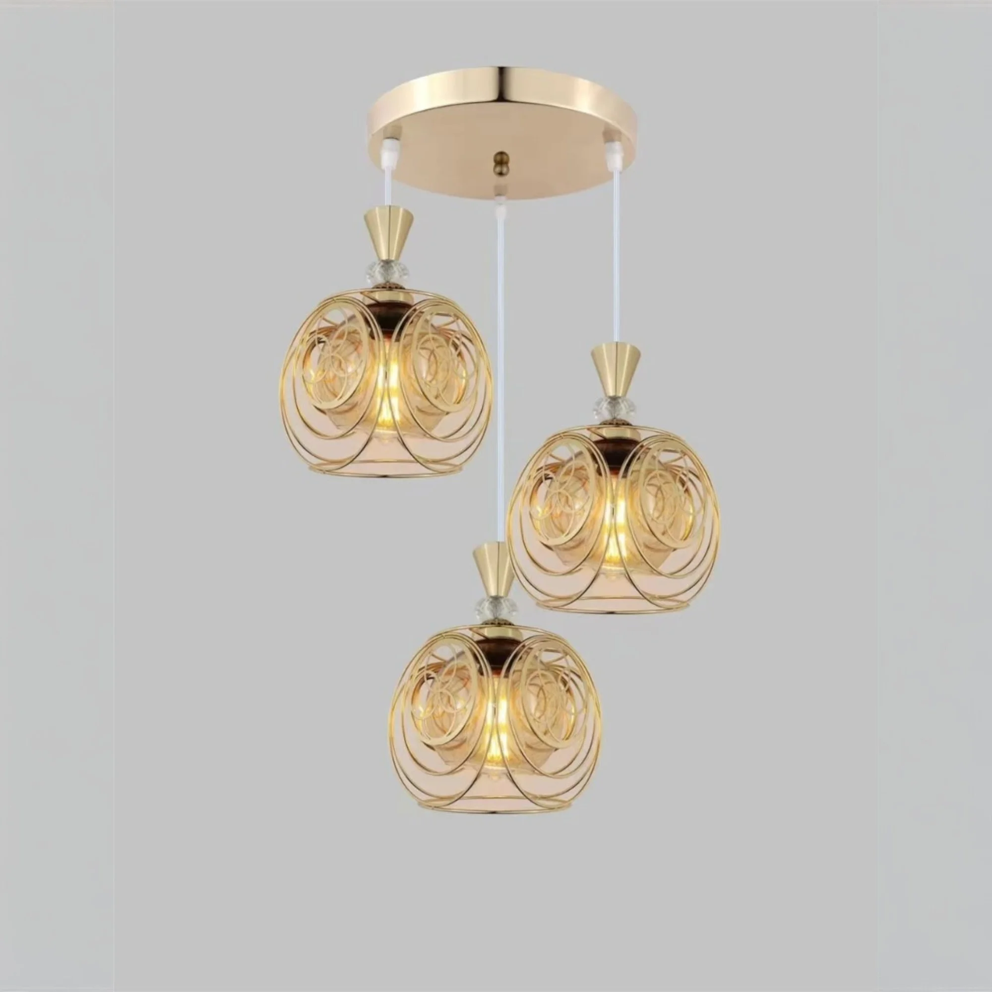 European Golden Smoky Glass Set of 3 Pendant Hanging Light - Warm White