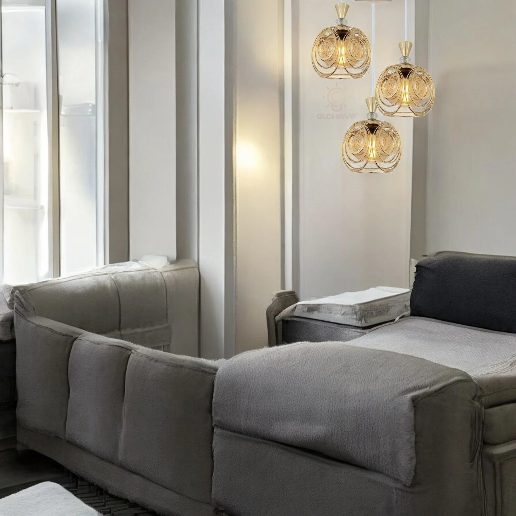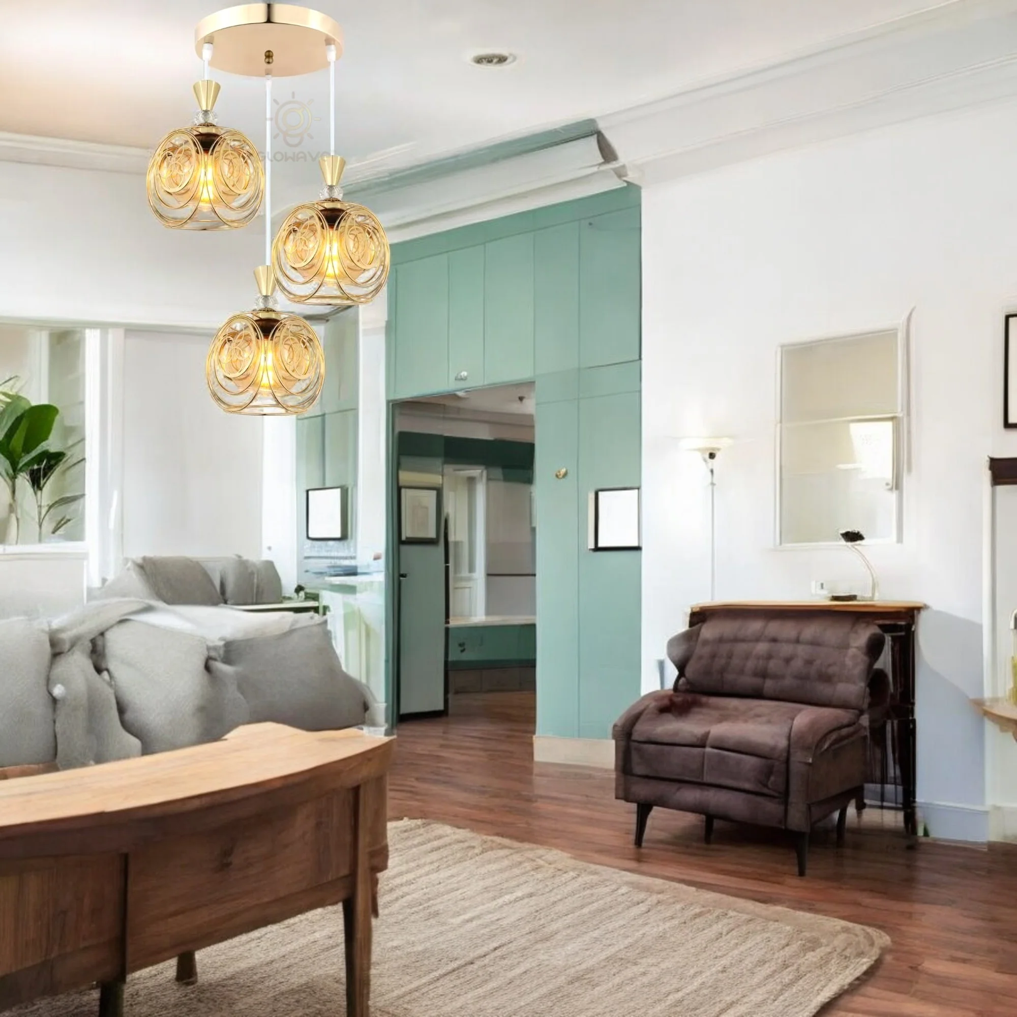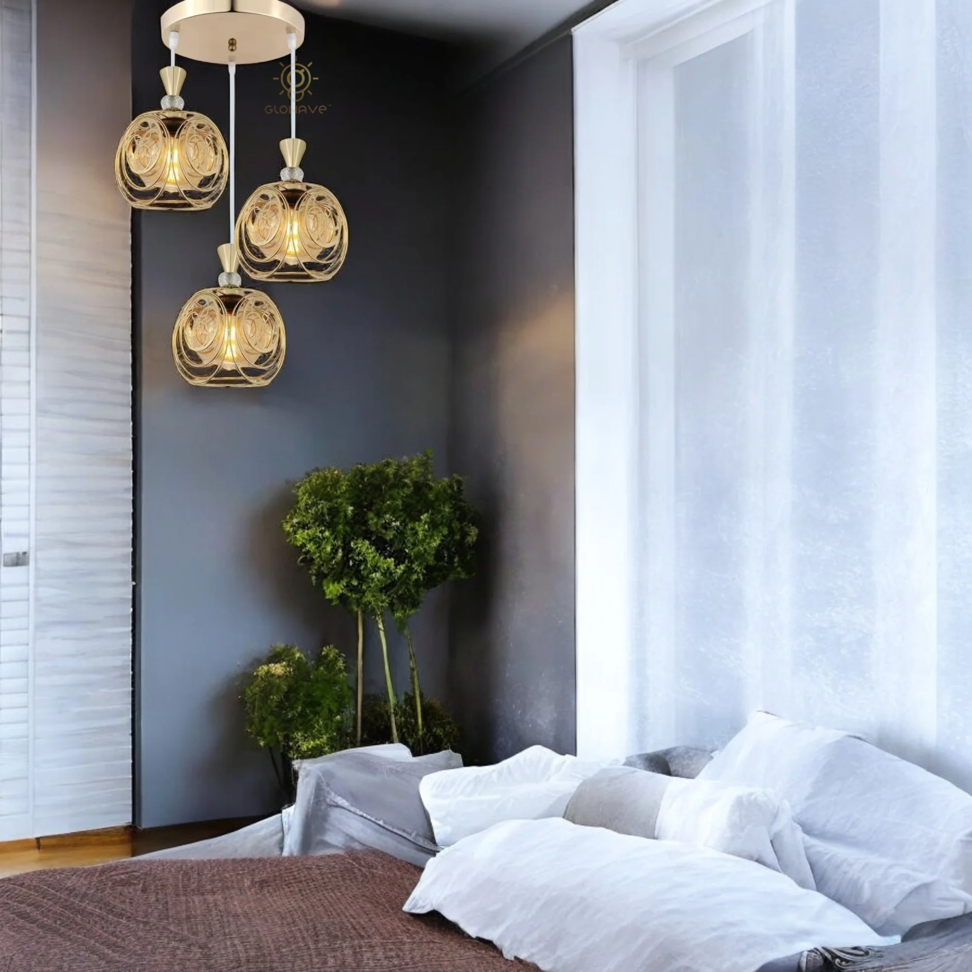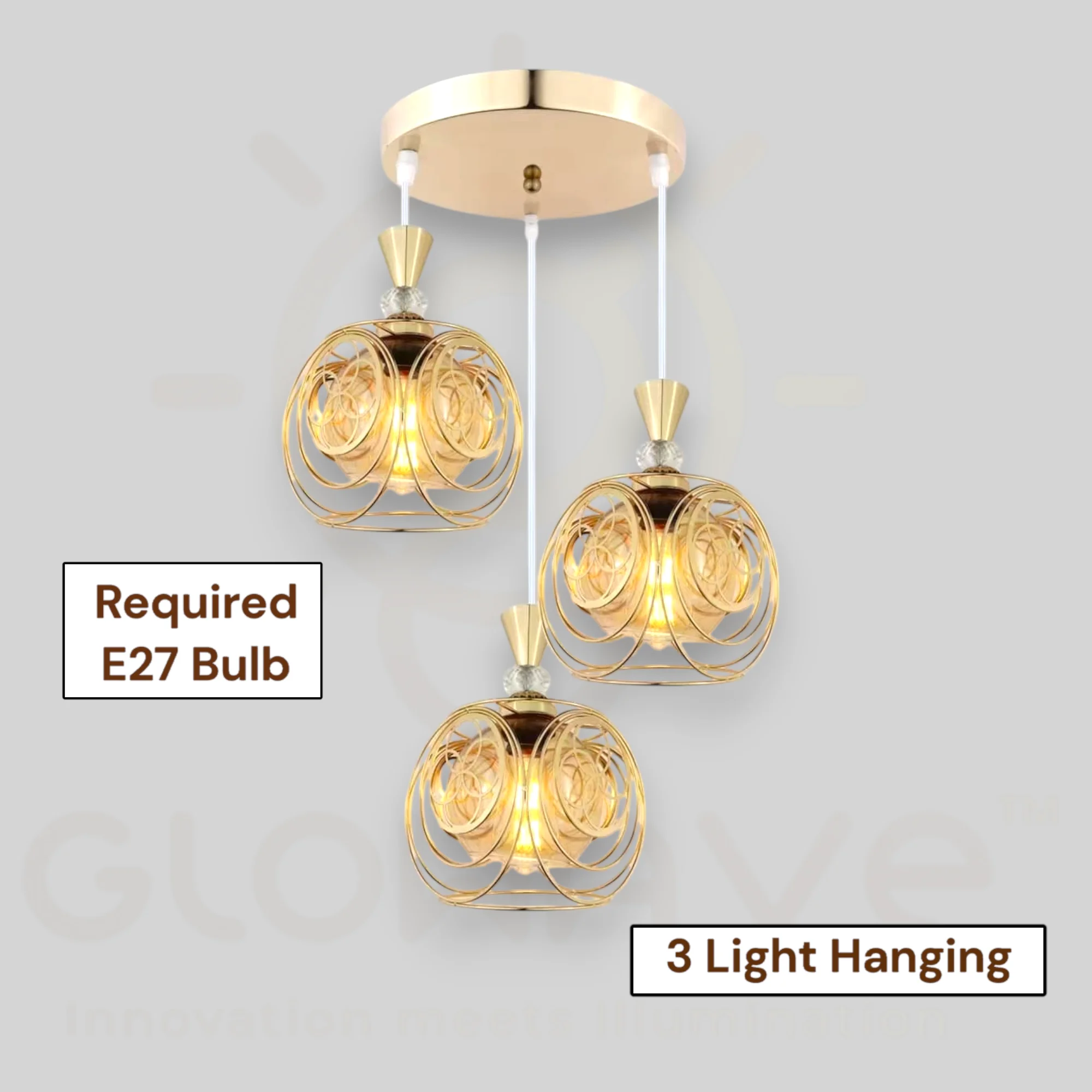 Golden Glass Set of 3 Pendant Hanging Light - Warm White