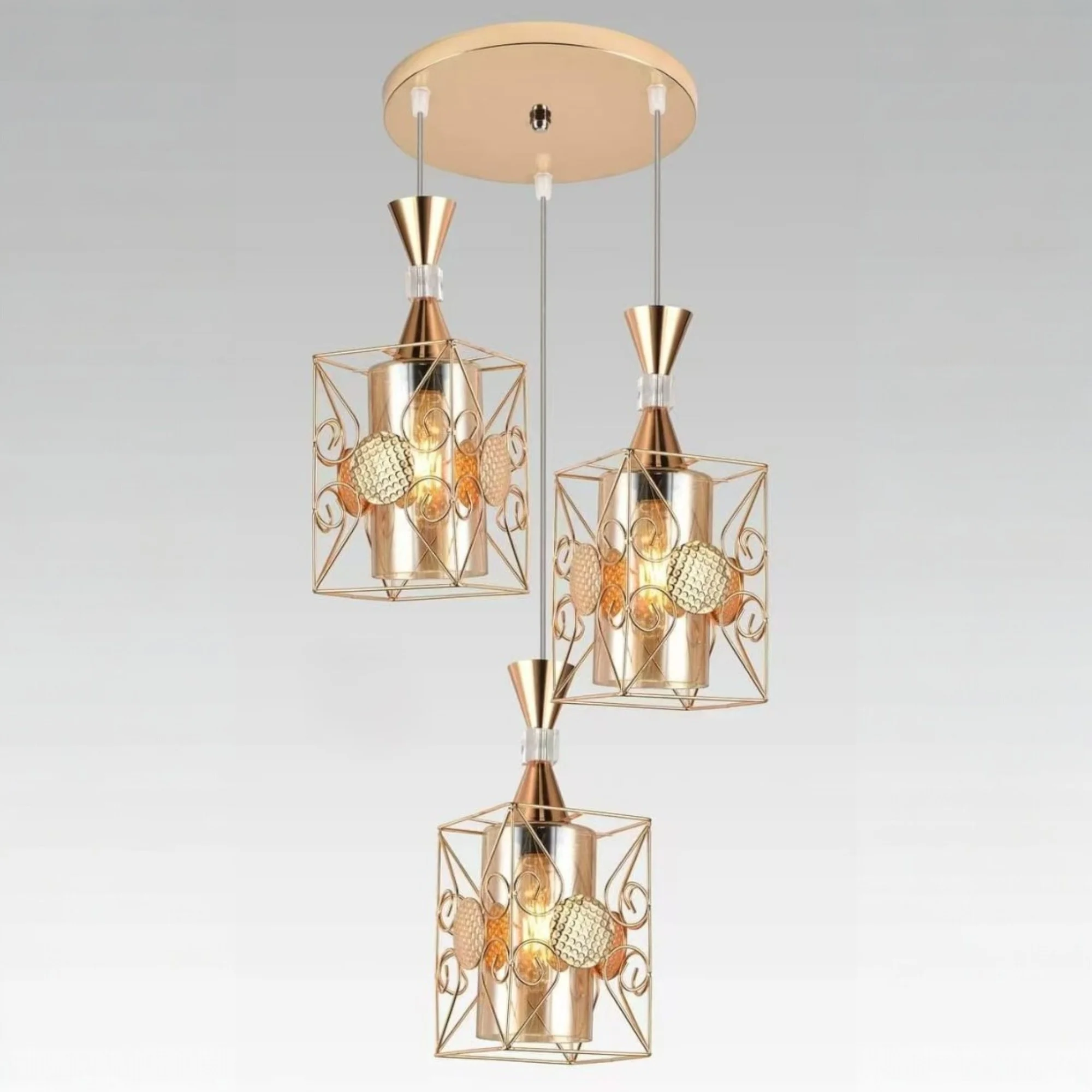 European Golden Smoky Glass Set of 3 Pendant Hanging Light - Warm White