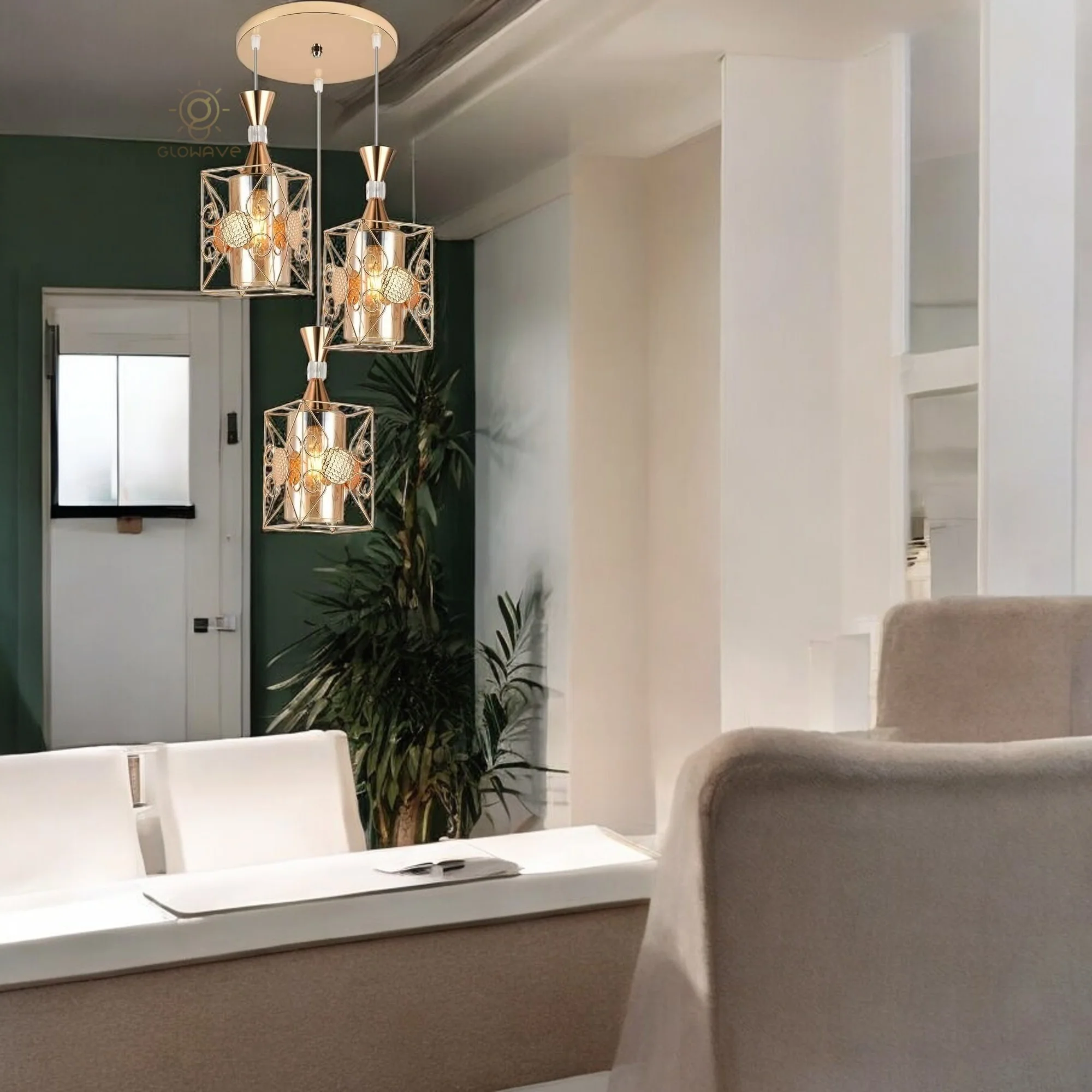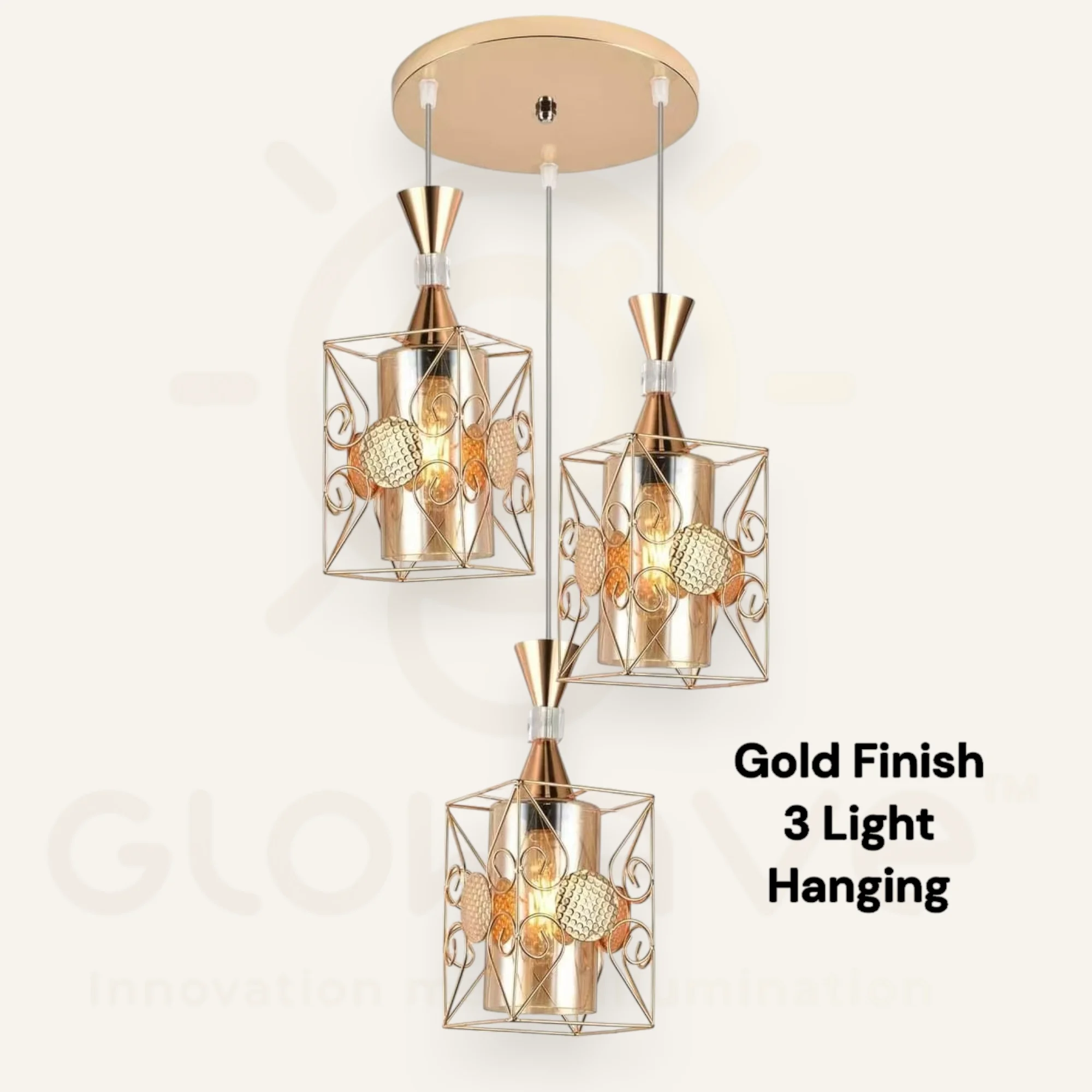Golden Glass Set of 3 Pendant Hanging Light - Warm White