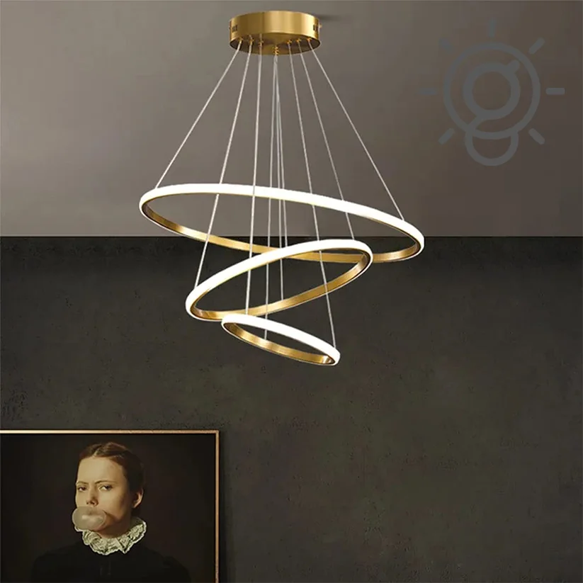 Golden LED Metal 3 Rings Pendant Hanging Chandelier Light - Tricolour