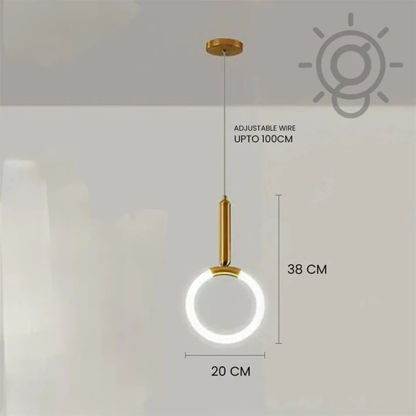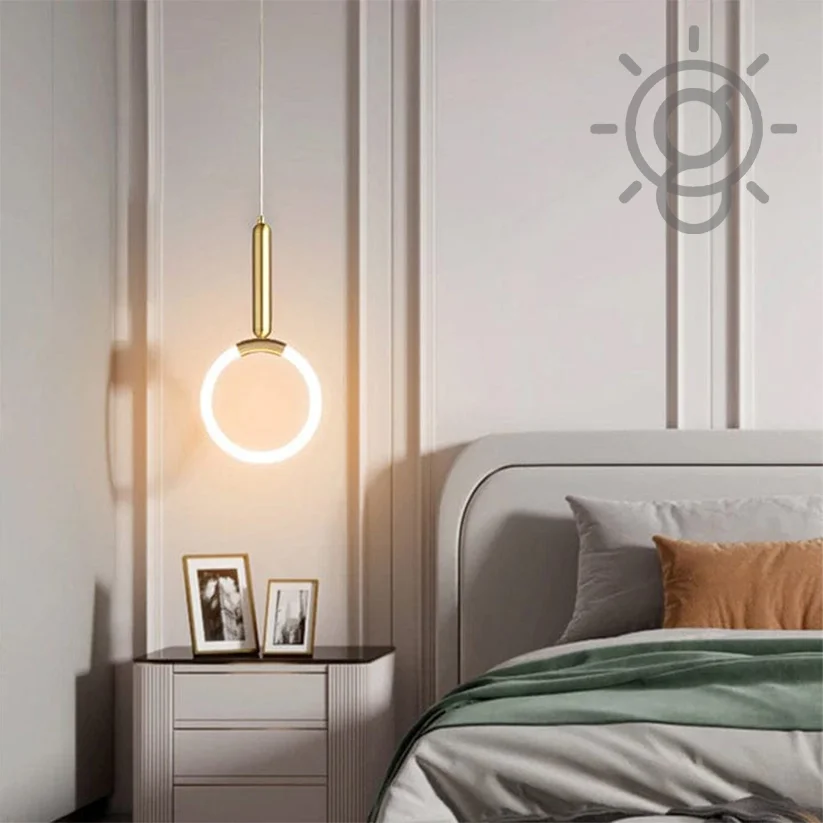 Golden LED Round Bedside 1 Pendant Hanging Light - Tricolour Light