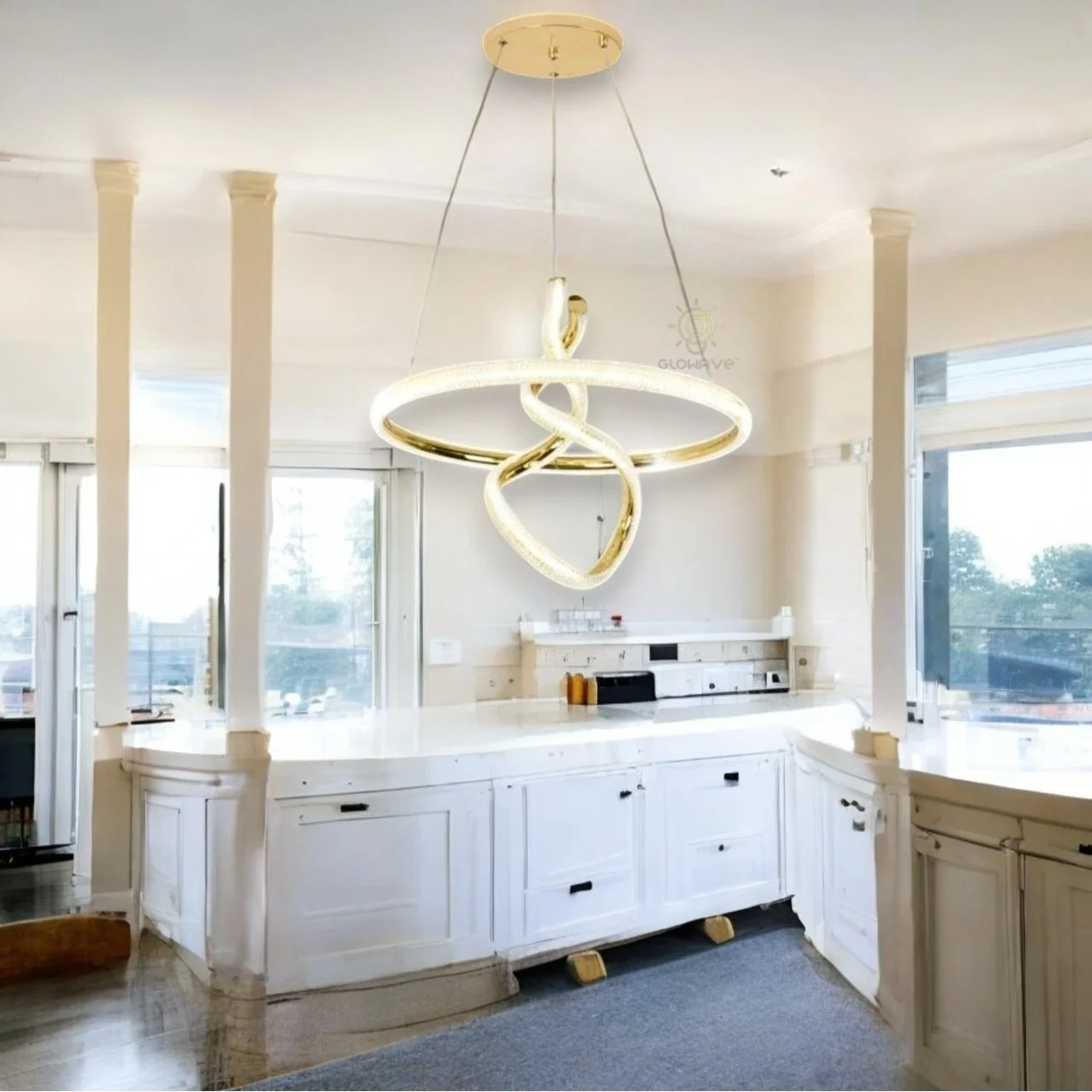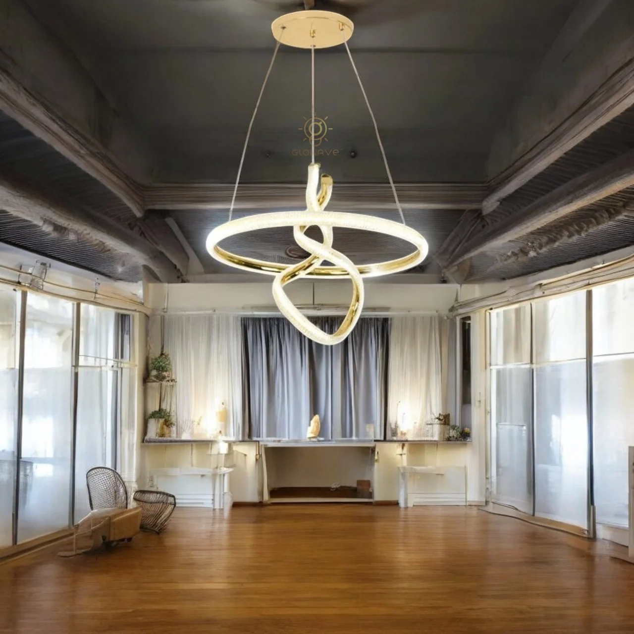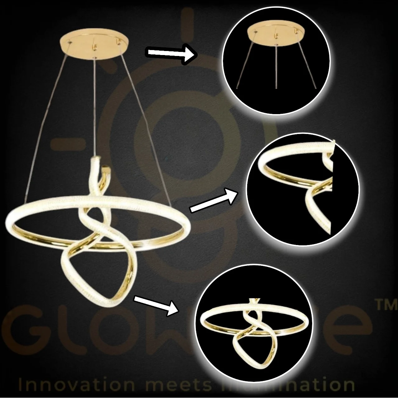 - Stunning LED Light golden round twisted design Bedside Hanging Pendant Ceiling Lamp Fixture
