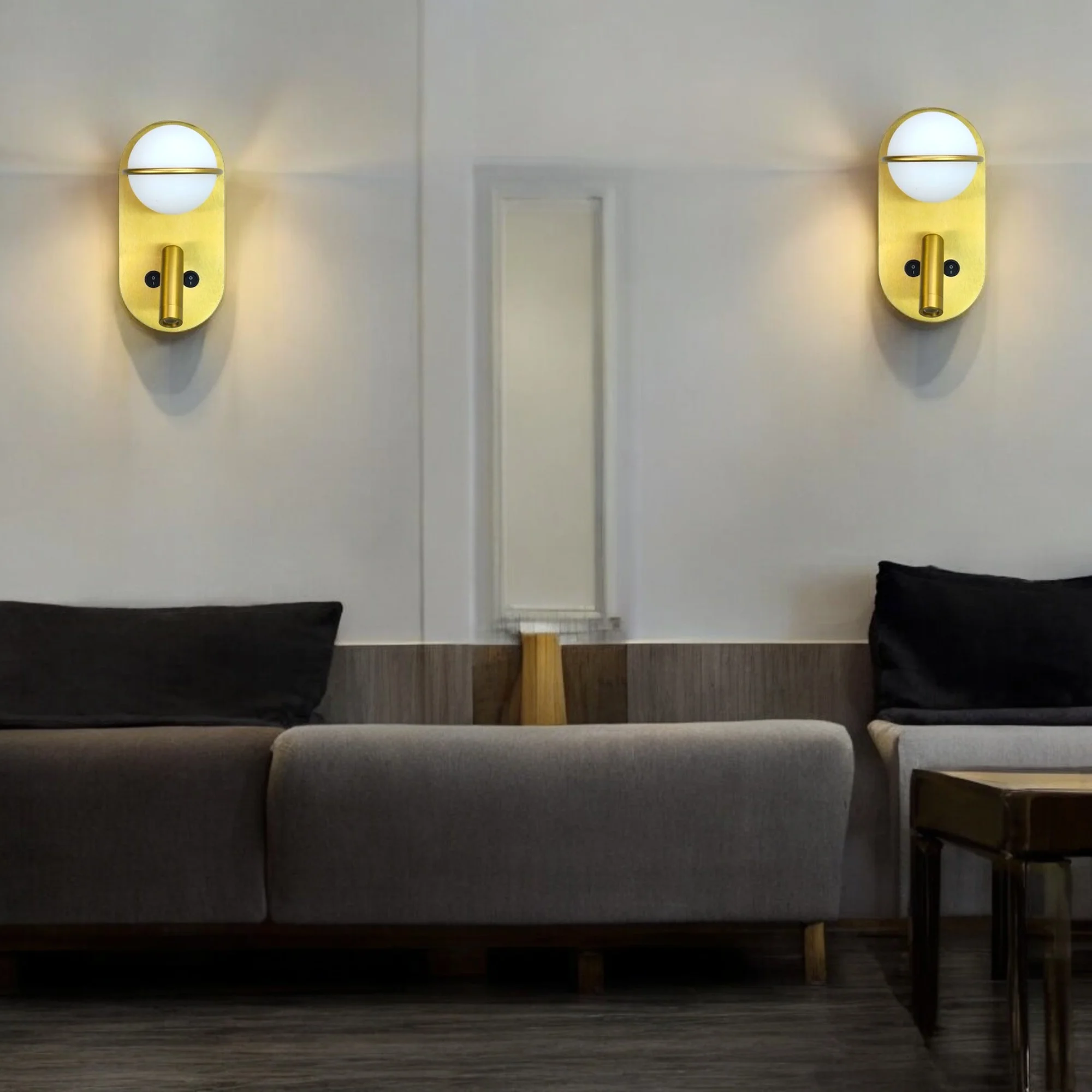 Golden LED Wall Lamp with Adjustable Spot Light - Tricolour (Golden)
