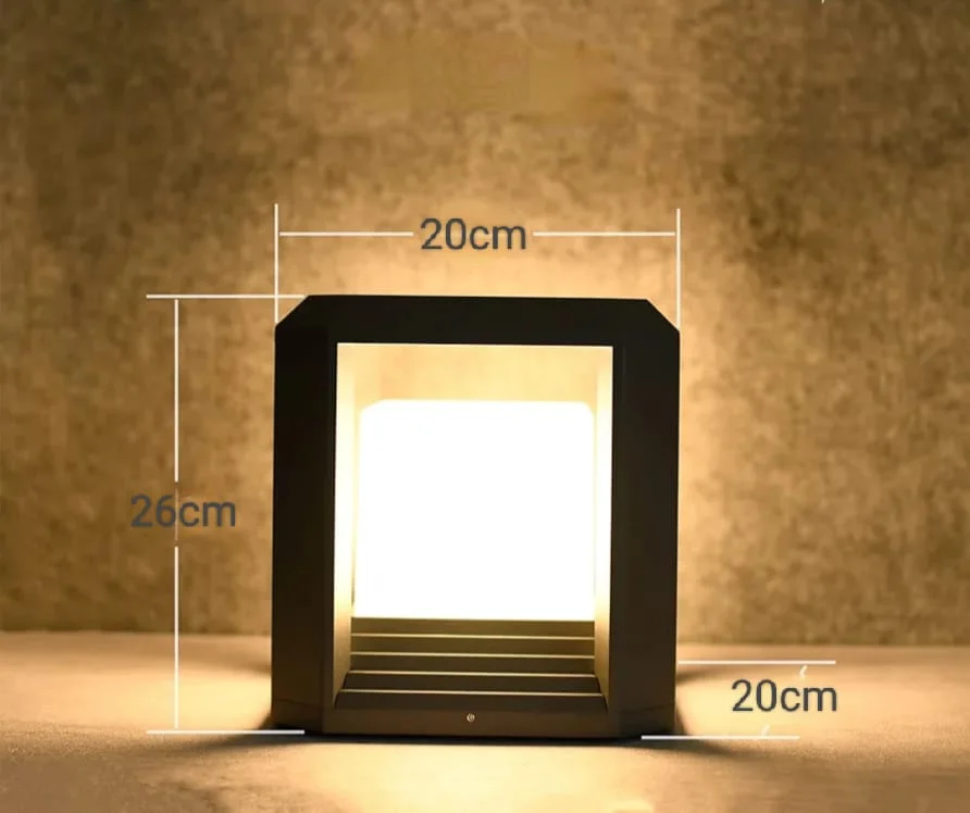 grey Square Post Light Pillar Light Column Light, Lantern Post - Warm White