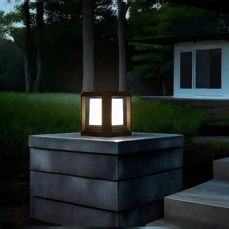 Decorative Black Square Post Light Pillar Light Column Light - Warm White