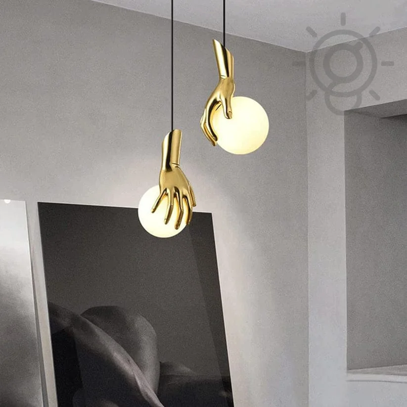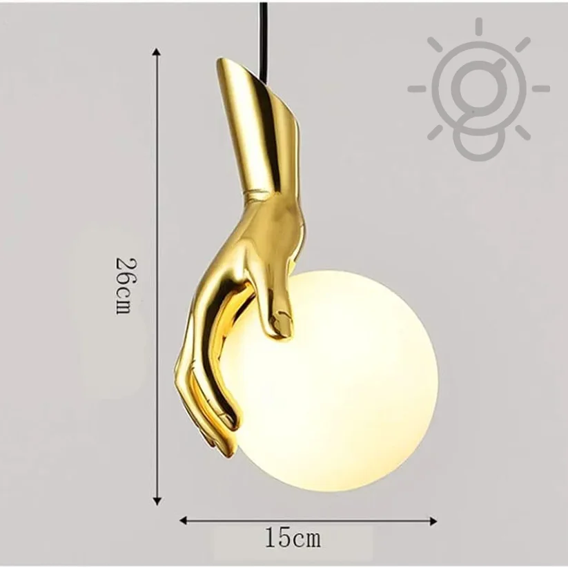 "Add brilliance to any space with our 1 LED Gold Hand Holding Globe Pendant Light. This minimalist hand globe hanging light boasts a sophisticated design, perfect for bedrooms, kitchens, entryways, bathrooms, living rooms, lobbies, and restaurants alike. With its warm white light, it offers versatile ambiance to suit any mood or occasion. Illuminate your space with elegance and style today!"