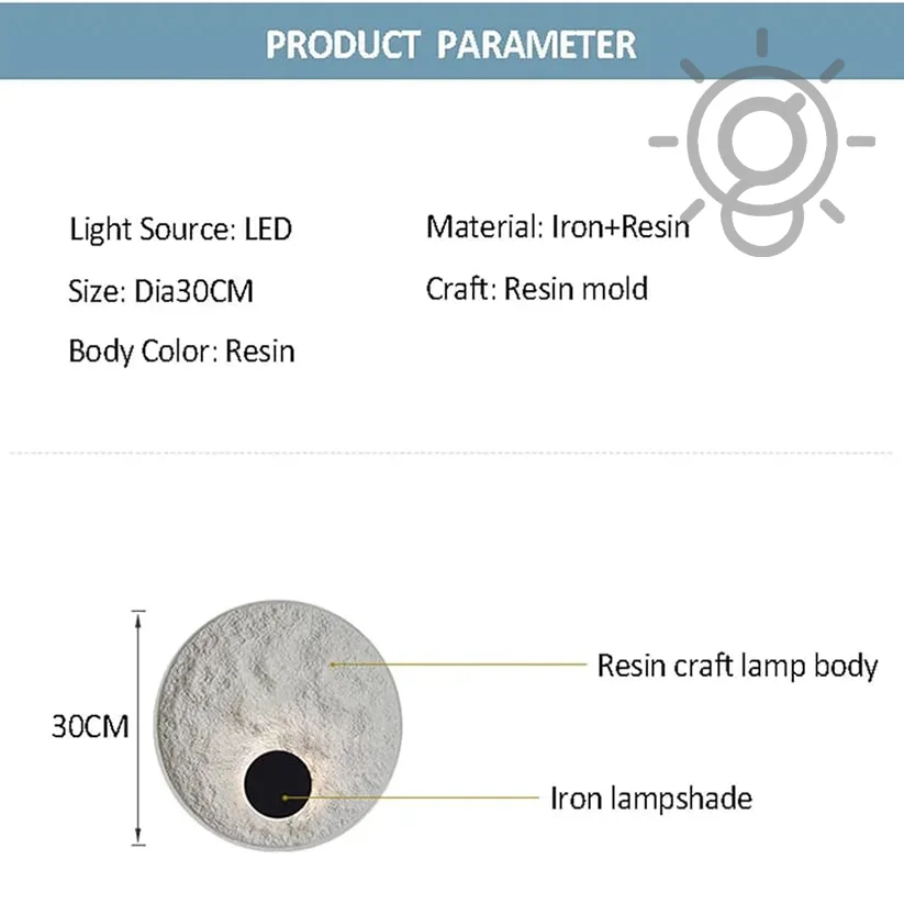 - Luxurious Finish Grey Black Moon Wall Lamp