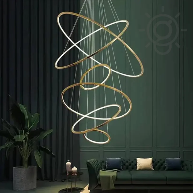 LED Metal 6 Rings Golden Chandelier - Tricolour