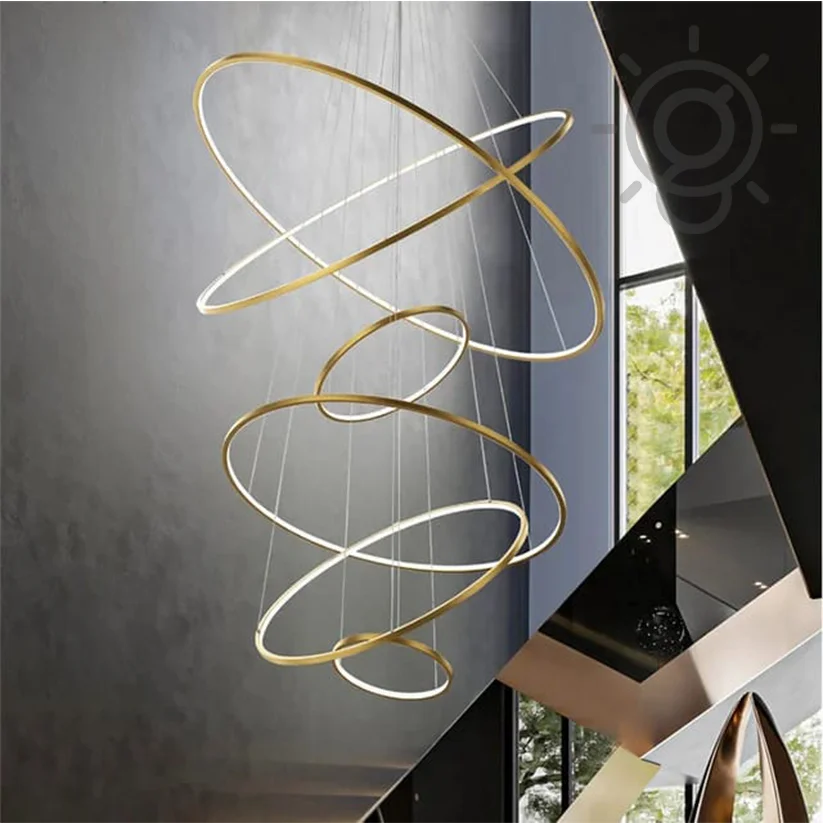 Elevate your space with the Modern LED Metal 6 Rings Golden Pendant Chandelier Light. Perfect for kitchens, cafes, and dining bars, this stunning fixture offers tricolour lighting options: Warm White, White, and Natural White. The sleek golden metal design adds a touch of elegance and modernity, making it a versatile and stylish choice for any setting. Ideal for contemporary interiors, this chandelier enhances ambiance while providing efficient LED lighting. Transform your space with this exquisite hanging light today!
