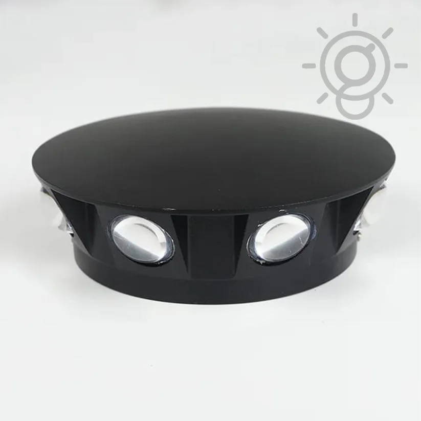 LED Outdoor Black Round 6 Way Flower Splitter Wall Light, IP65 Waterproof (Warm White)