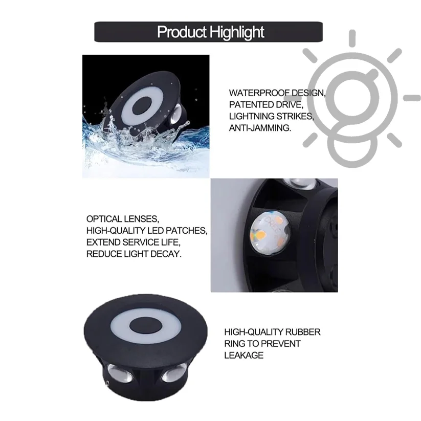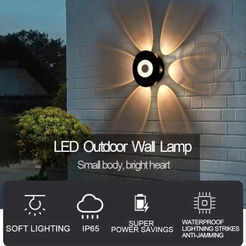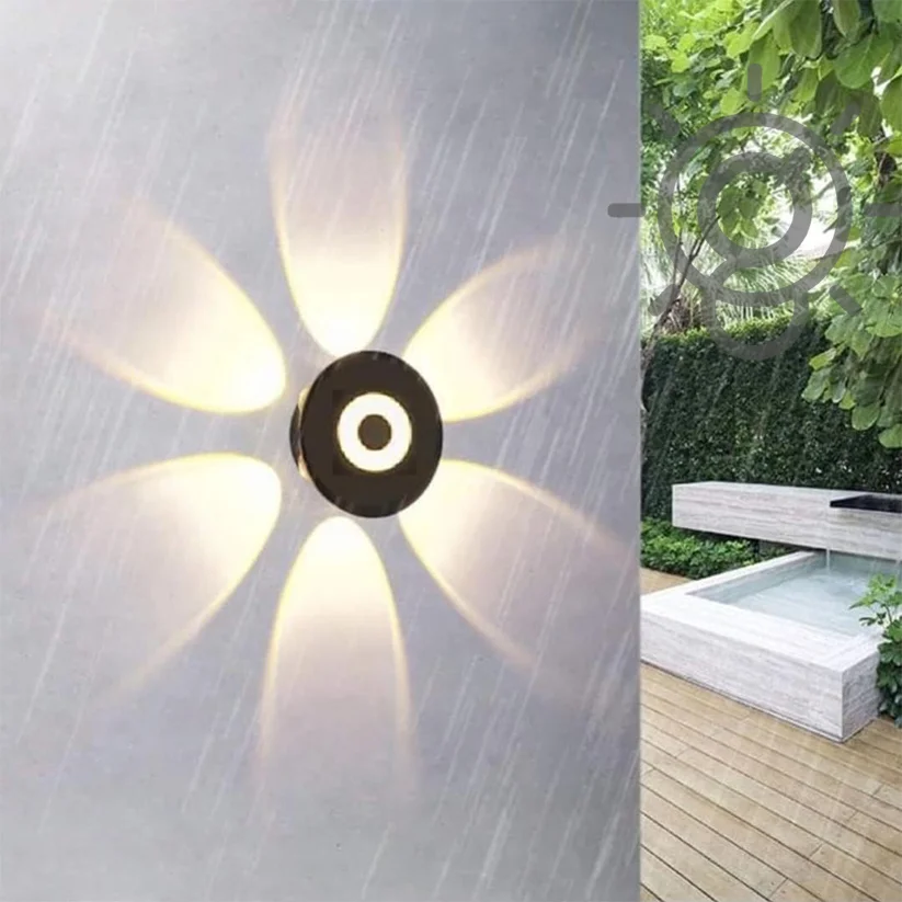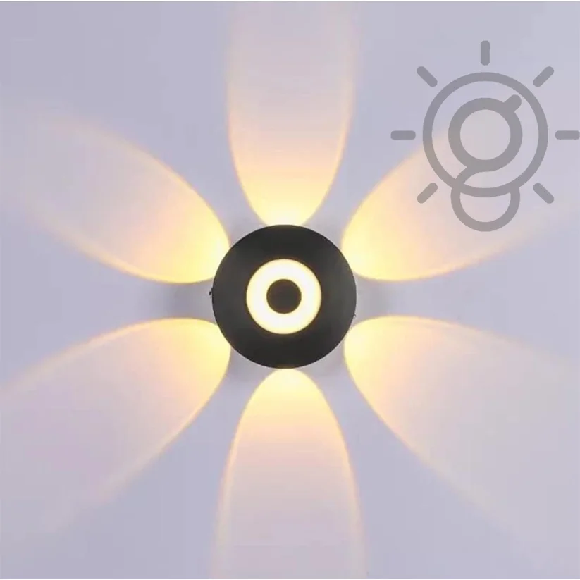 LED Outdoor Round 6 Way Flower Splitter Black Wall Light, Waterproof (Warm White)