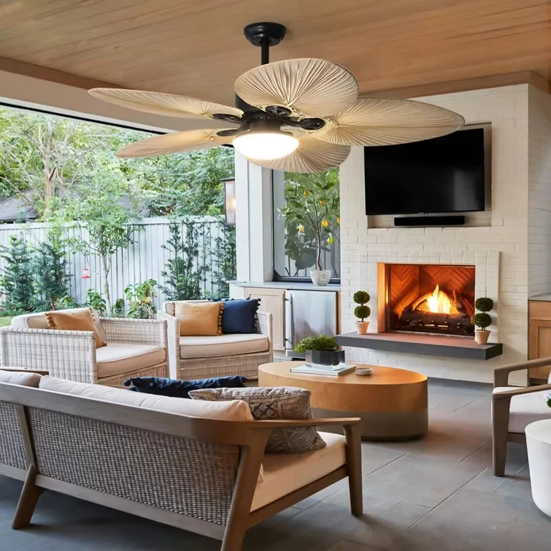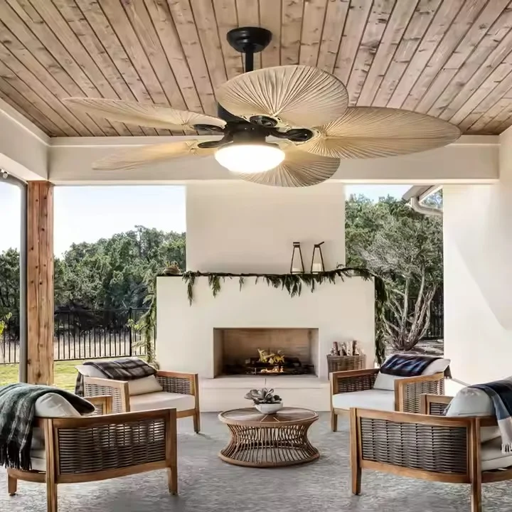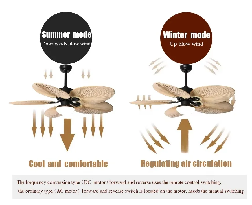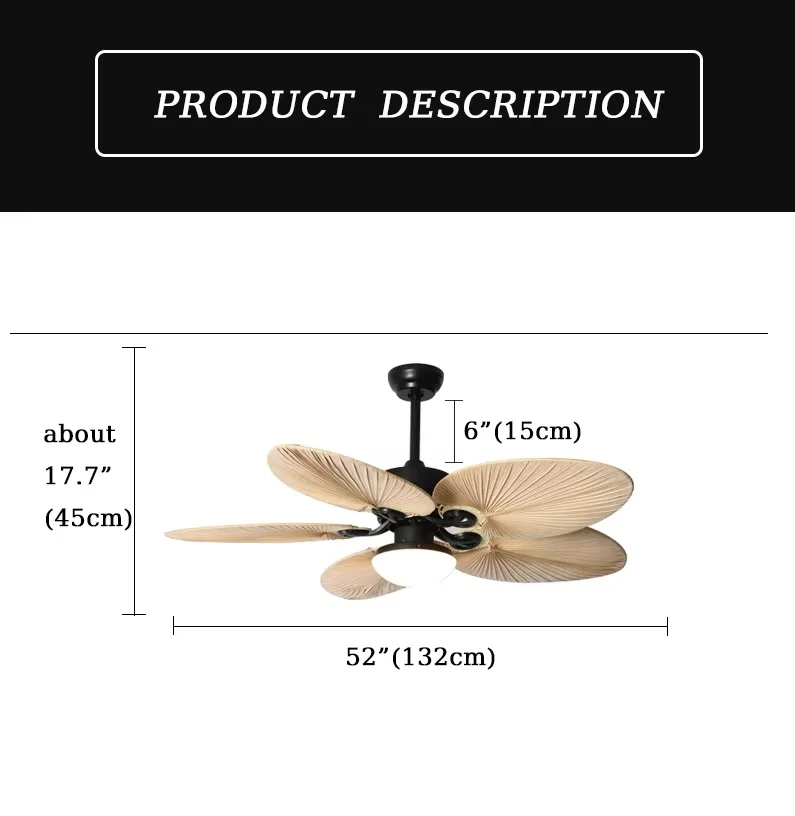 - Elegant Design: Features a durable metal body with five brown ABS blades disguised as palm leaf wooden crafted blades.