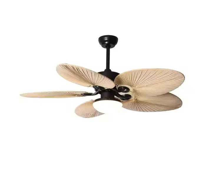 Metal Body 5 Beige Palm Leaf Wooden Textured ABS Blades Ceiling Fan (FI-7732)