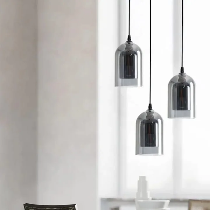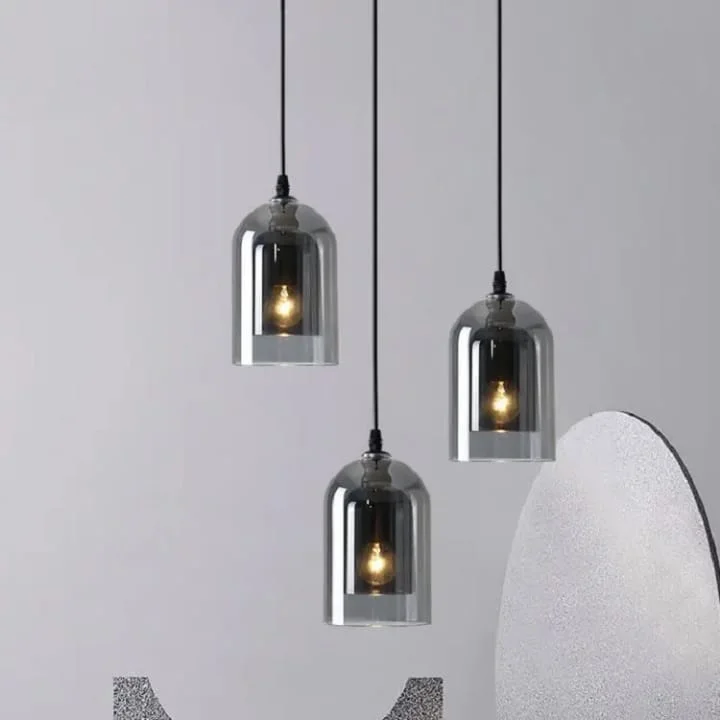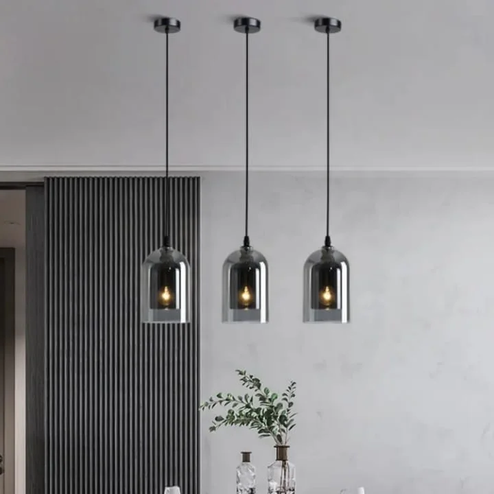Illuminate your space with the sophisticated elegance of the Double Smoky Glass Pendant Hanging Light. This exquisite designer chandelier combines modern style with functionality, making it a perfect addition to any kitchen, bedroom, or café. The pendant's smoky glass shade offers a warm, inviting glow, while its warm white light feature allows you to customize the ambiance to suit your mood and needs. With warm white light, this versatile ceiling lamp enhances any décor while providing optimal illumination.