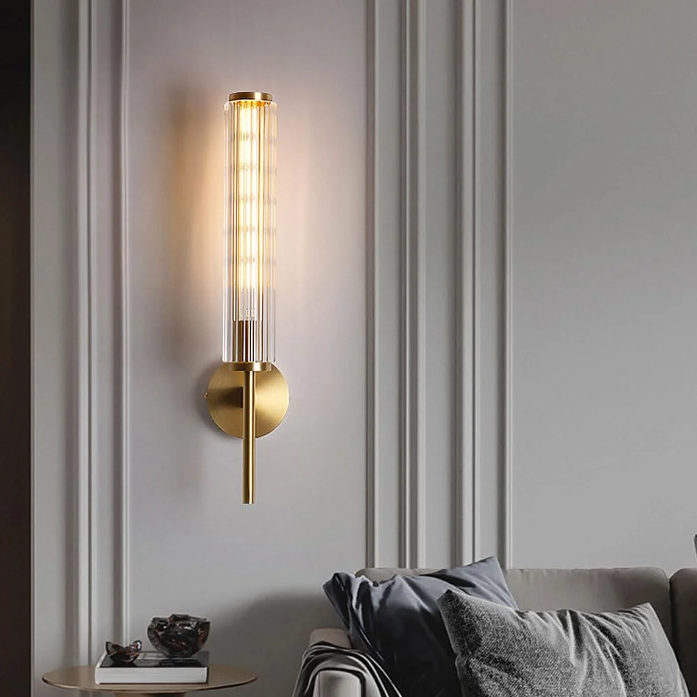 Long Tube Gold Finish Light Wall Lamp - Warm White