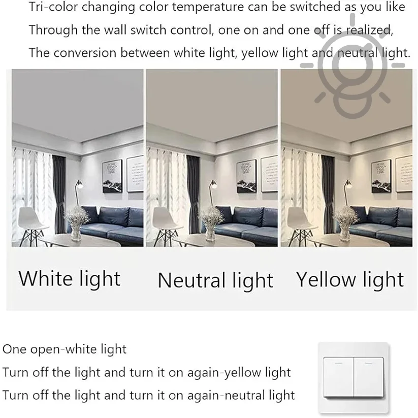 - Effortless 3 Step Colour Adjustable Light Step 1: Switch On ( Whitelight 6500k) Step 2: Switch Off & On ( Warmwhite Light 3000k) Step 3: Switch Off & On ( Naturalwhite Light 4000k)