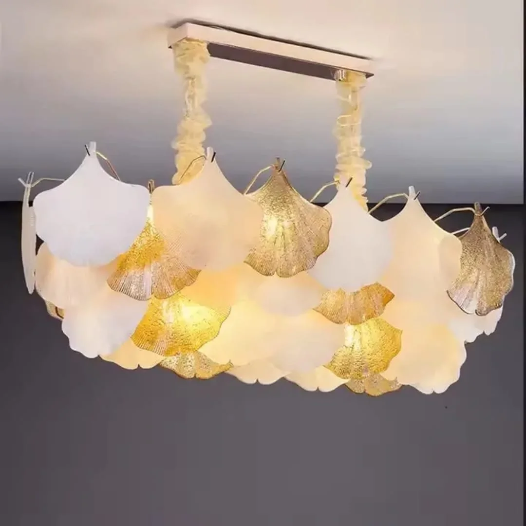 Luxury Aluminium Body White Golden Clear Glass Leaf Chandelier - Warm White (800 * 300 Oval)