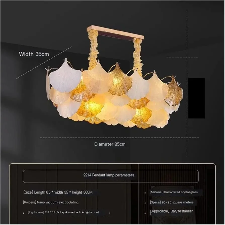 Enhance your home with the elegant White, Clear Glass Leaf Chandelier. This modern chandelier light fixture features a 500mm diameter adorned with beautiful blue glass leaves, offering a striking blend of artistry and functionality. Emitting a warm white glow, it creates a cozy and inviting atmosphere, perfect for living rooms, bedrooms, kitchen islands, hotels, and entryways. Crafted with high-quality materials, this chandelier is designed for durability and long-lasting beauty. Elevate your interior décor with this exquisite chandelier and experience the perfect combination of style and illumination.