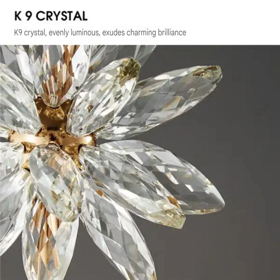 Introducing our Modern luxury flower Gold Wall Light: a blend of elegance and charm. With its sleek metal frame, luxurious gold finish, and whimsical crystal design, this piece adds sophistication to any space. Easy to install and built to last, it's the perfect choice for elevating your decor. Illuminate your home in style today!