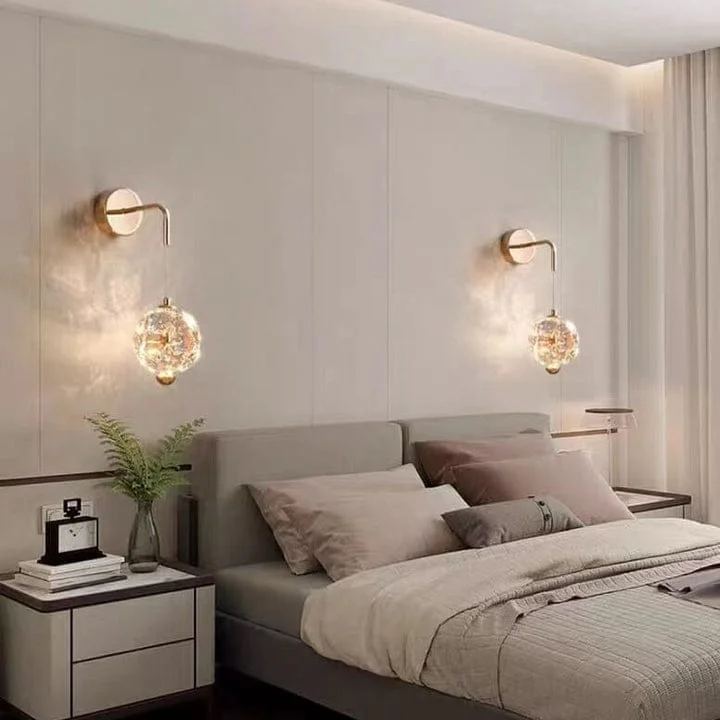 Luxury Orb Hardware Amber Crystal LED Wall Lamp - Tricolour