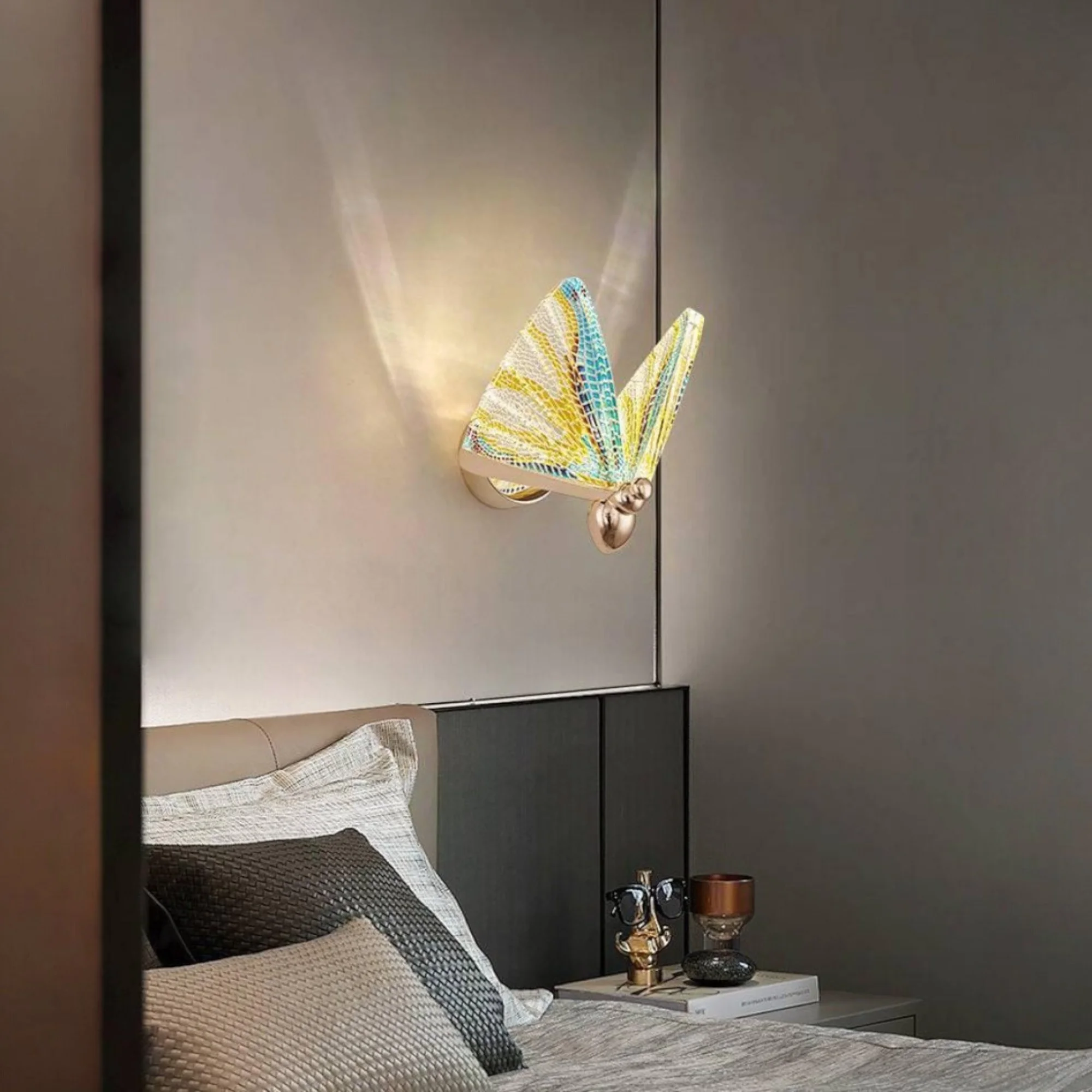 Introducing our Butterfly Modern Multicolour Wall Light: a blend of elegance and charm. With its sleek metal frame, luxurious gold finish, and whimsical butterfly design, this piece adds sophistication to any space. Easy to install and built to last, it's the perfect choice for elevating your decor. Illuminate your home in style today!"