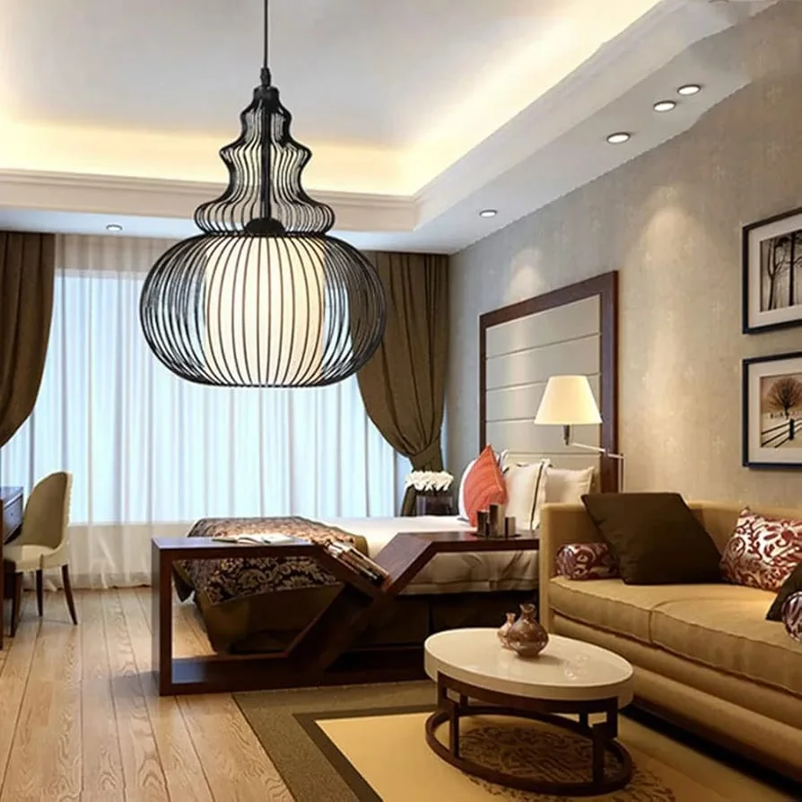 - Unique Design: Post-modern pendant light with a traditional Chinese birdcage and gourd-shaped glass, perfect for stylish spaces.