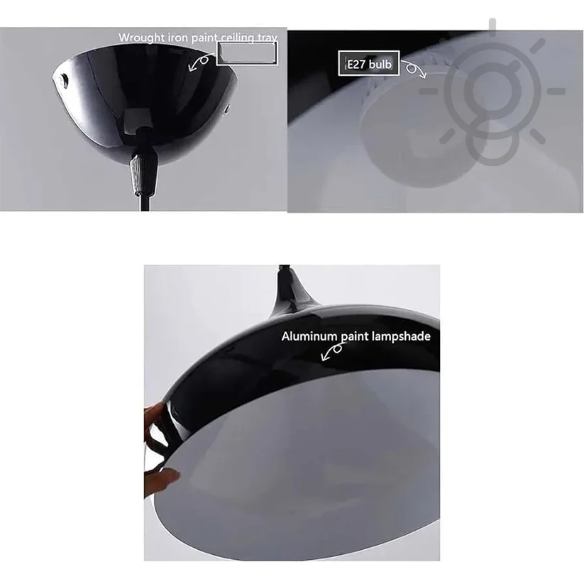 Minimalist Black Aluminium Round Lamp Shade Pendant Lamp Hanging Light - Warm White
