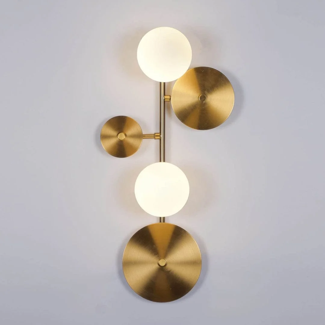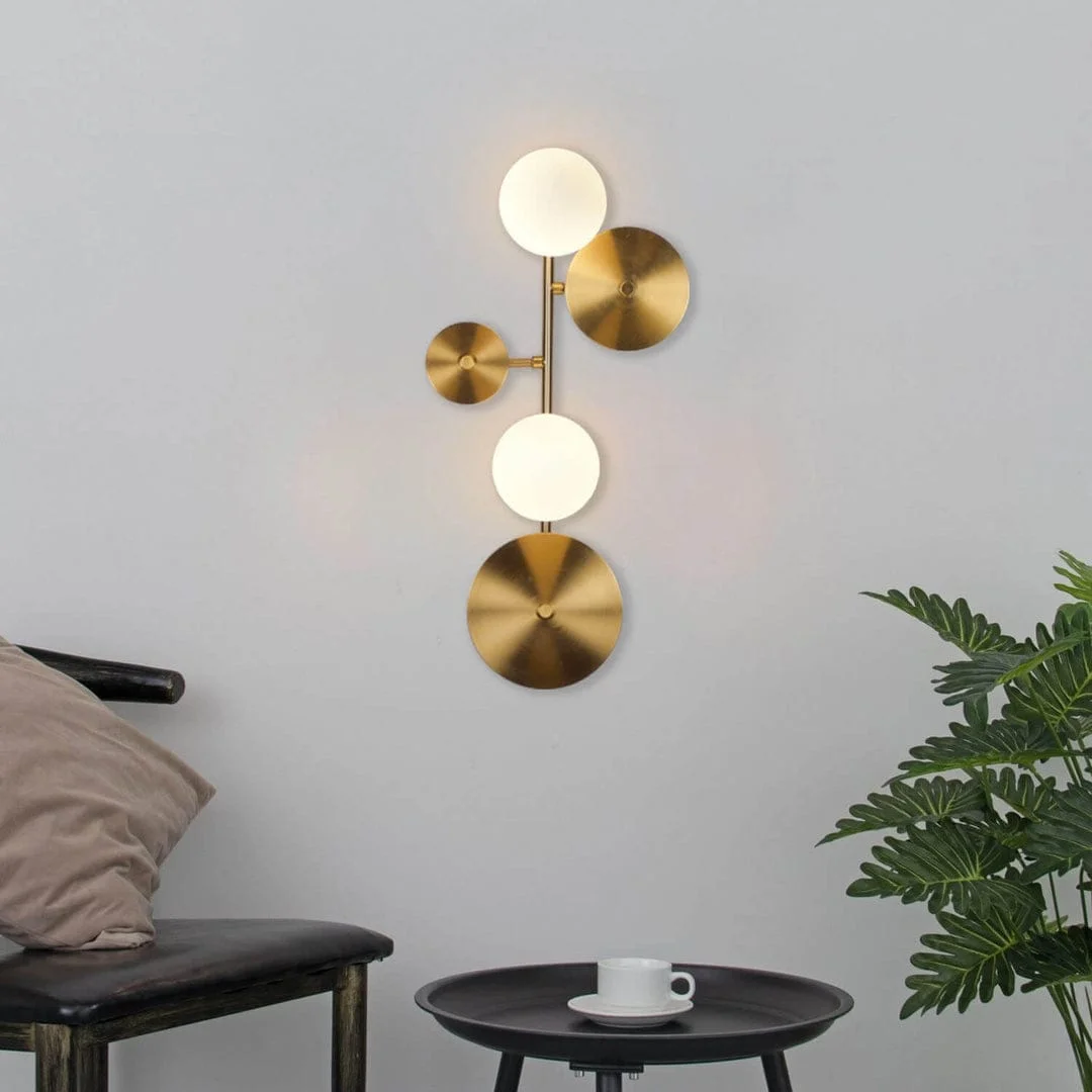 Elevate your living space with the Modern Glass Circular Shape Balls Golden Finish LED Wall Lamp. This elegant lighting fixture, perfect for your living room, bedroom, or bedside, features a sleek golden finish and contemporary glass balls design. It provides a warm white glow that creates a cozy ambiance. Note: Bulb not included.