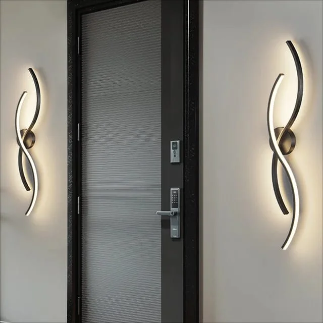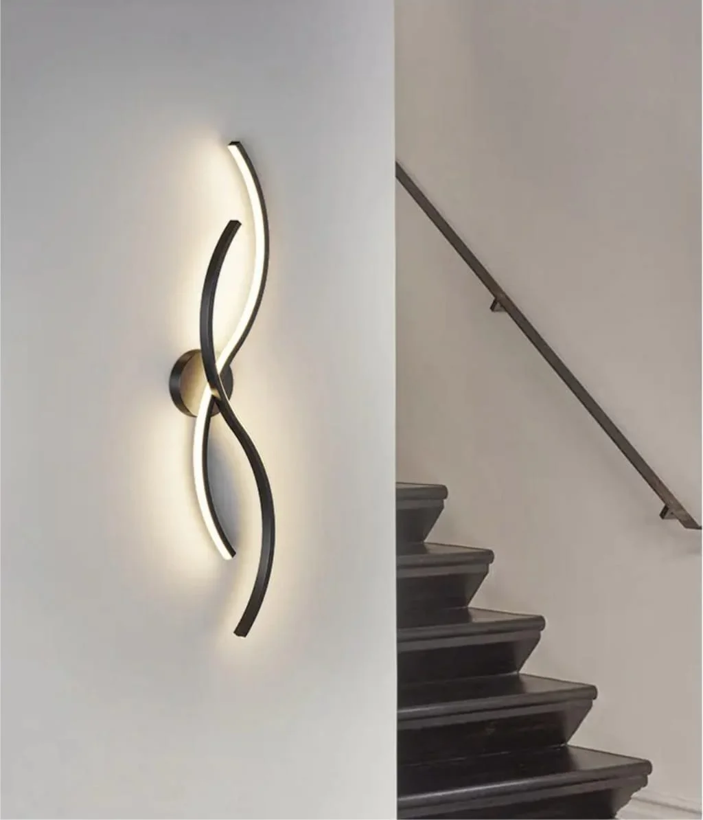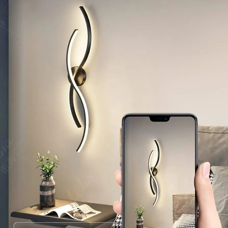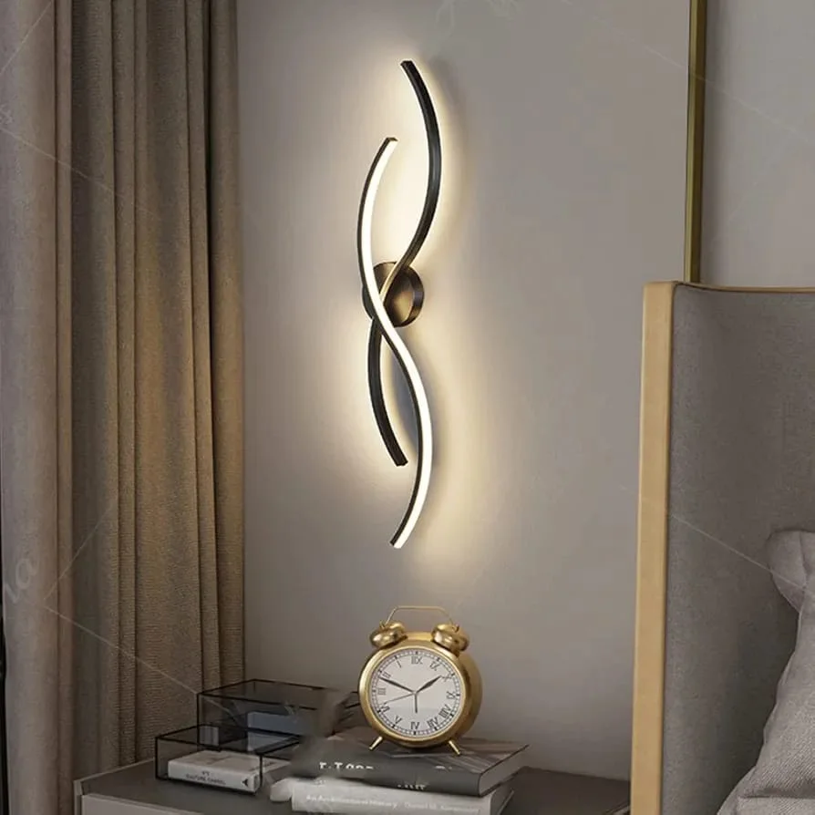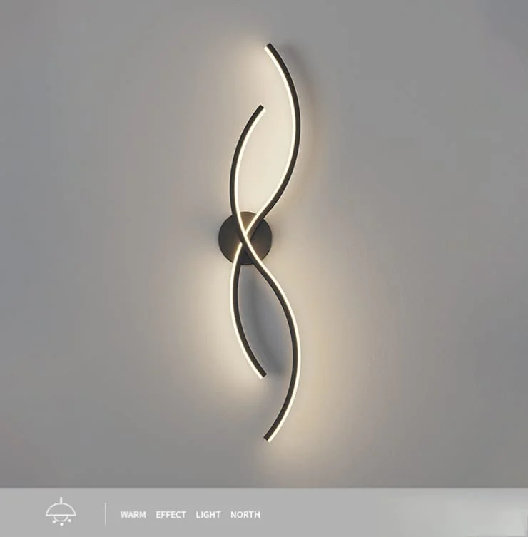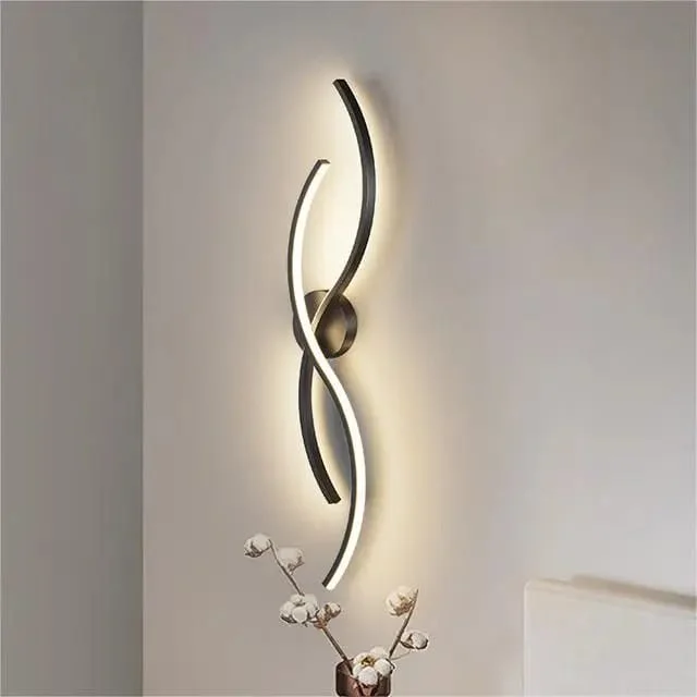 Modern Black Double S Long LED Light Crest Wall Lamp - Tricolour