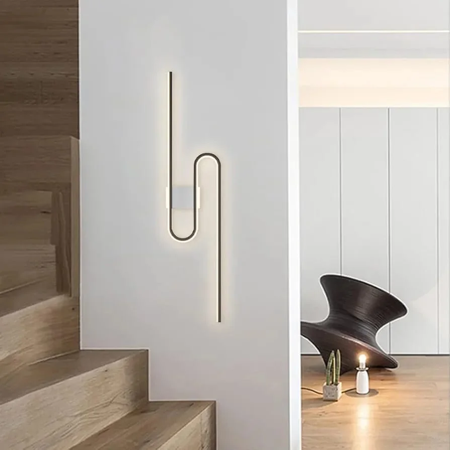 Modern Black Irregular Pattern Long LED Light Aura Wall Lamp - Tricolour