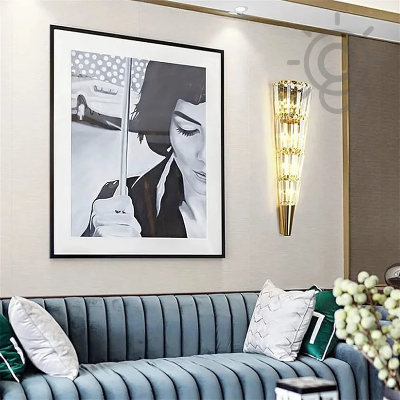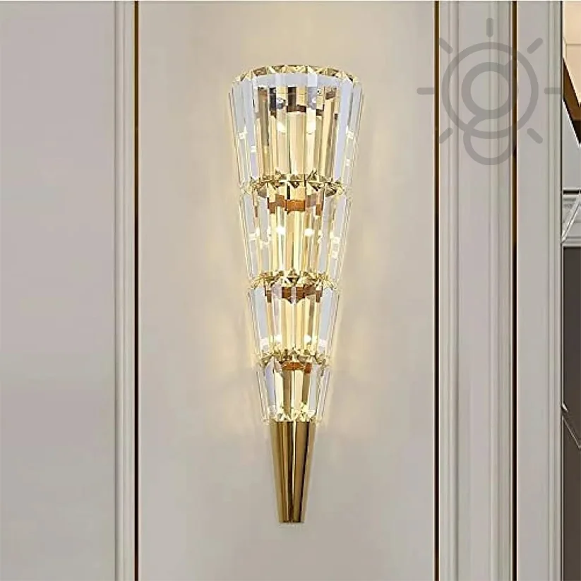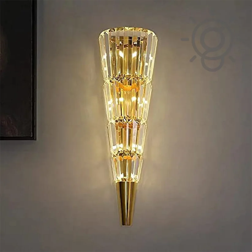 Illuminate your home with the Modern Golden Crystal Mashal Torch Shape Metal Wall Lamp. This chic lighting fixture, ideal for living rooms, bedrooms, and bedsides, combines a striking torch design with a luxurious golden finish. It emits a warm white light, creating a cozy and inviting atmosphere. Note: Bulb not included. Perfect for adding a touch of modern elegance to any space.