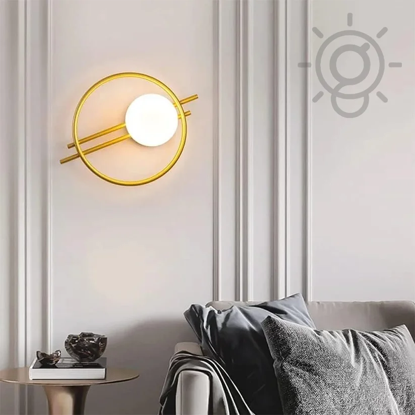 Modern Golden Round Frosted Glass Ball LED Light Wall Lamp - Warm White