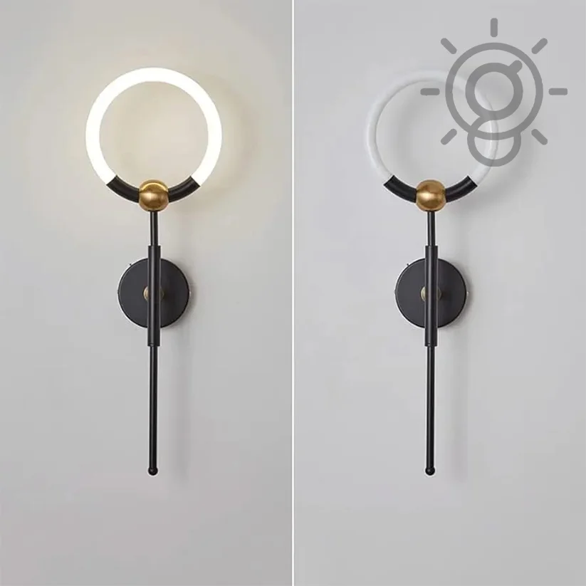 Modern Metal Acrylic Round Ring Black LED Wall Lamp - Warm White