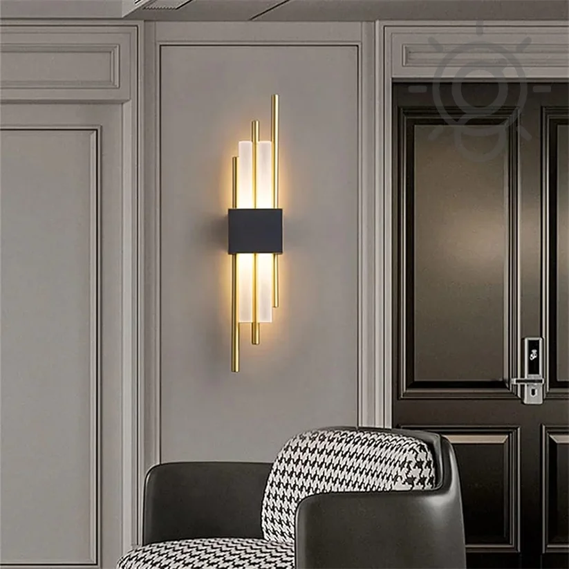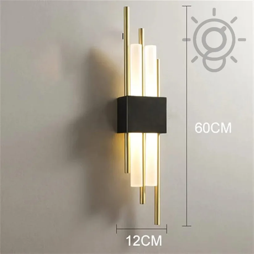 Modern Stylish Metal Black Golden Acrylic Pipe LED 600MM Long Wall Lamp - Warm White
