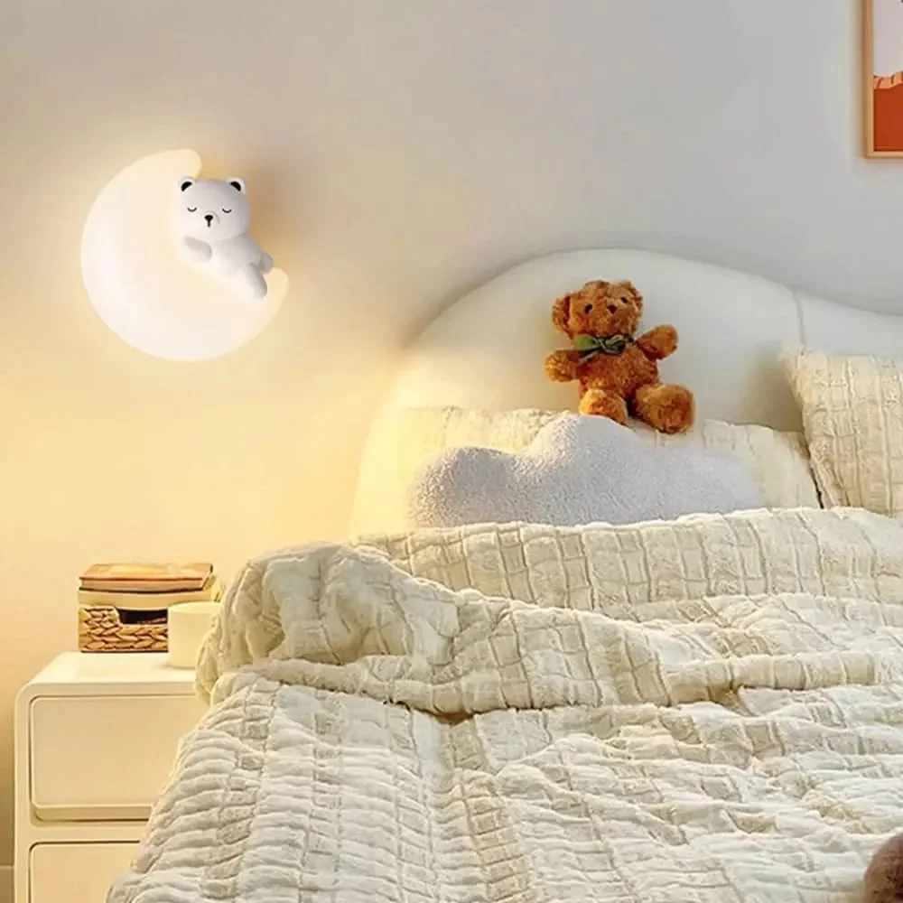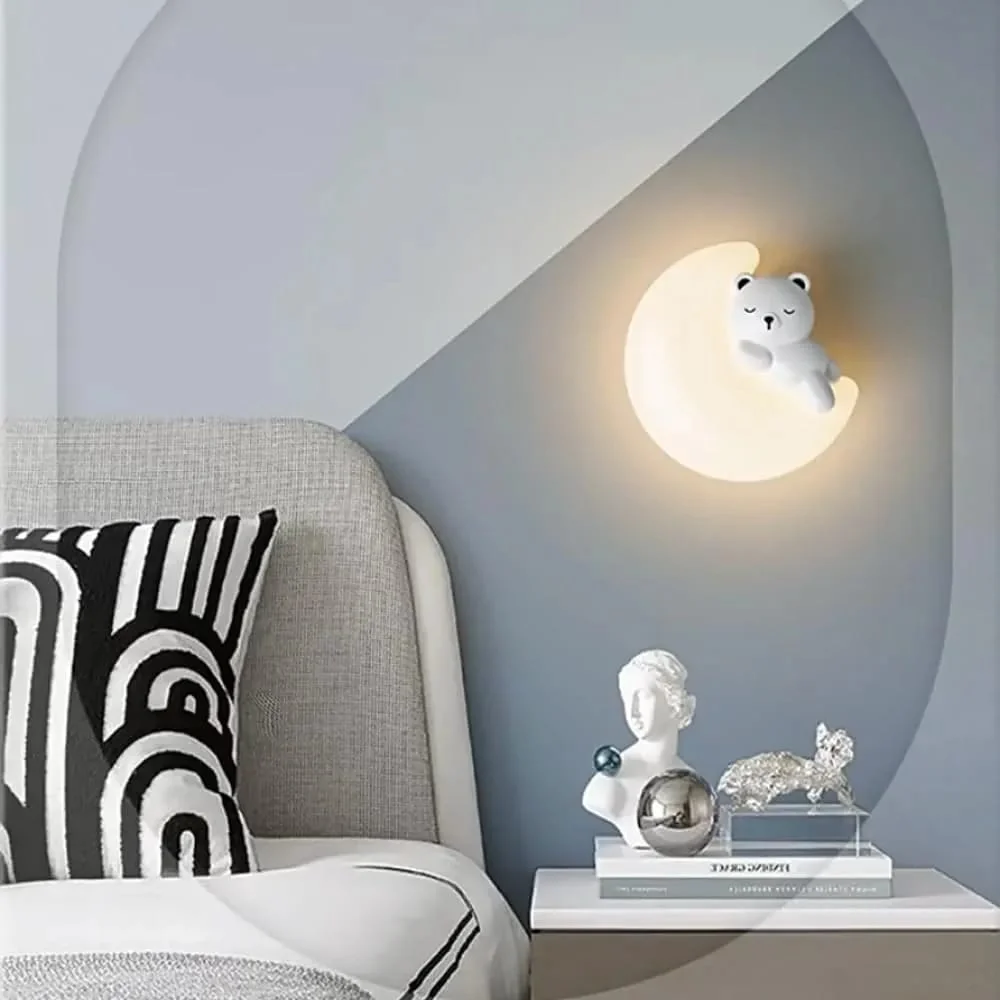 Moon Bear Wall Lamp Cute Animal Shape Wall Light for Kids Room - Tricolour