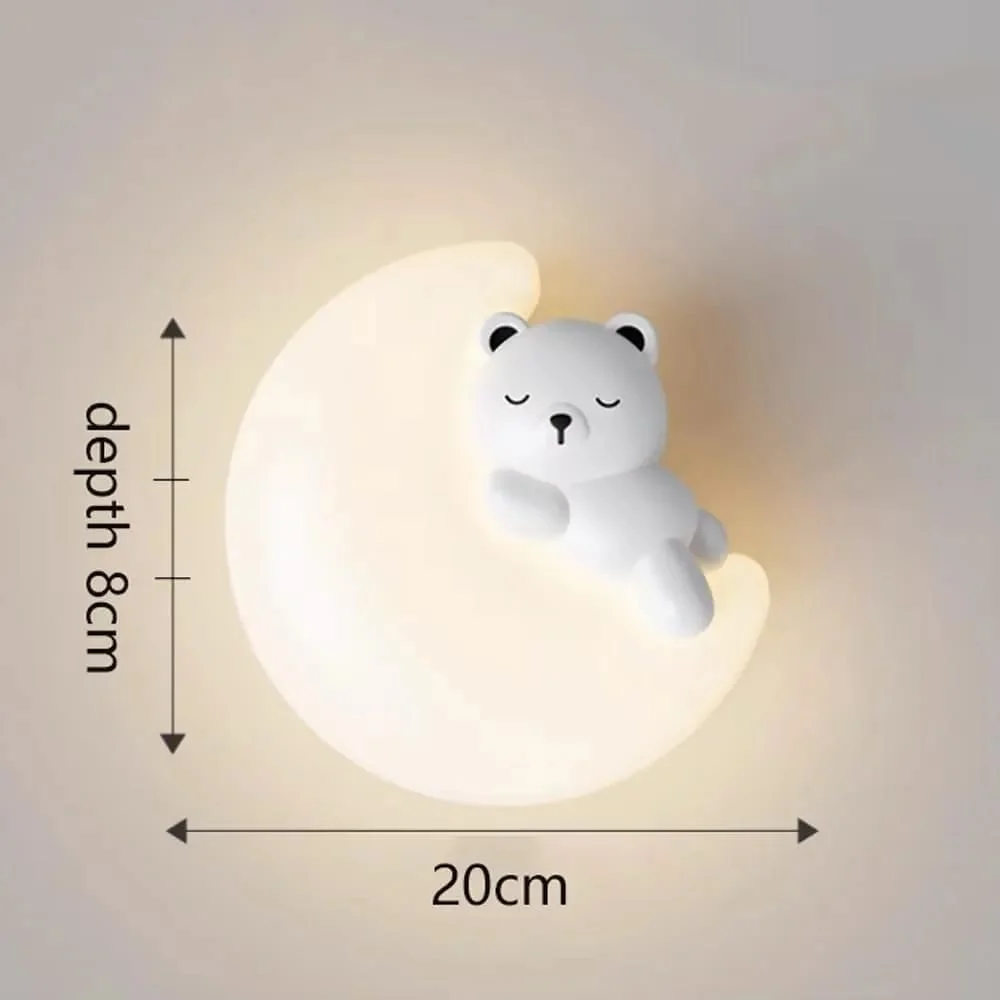 Illuminate your child's room with charm and style with our Cute Moon Bear Bedside Wall Lamp. This adorable lighting fixture features a warm white glow, creating a cozy and inviting atmosphere perfect for bedtime stories and peaceful nights. Crafted with a delightful different animal design, it adds a playful touch to any kids' room decor. Ideal for enhancing your child's bedroom with both functionality and fun, this wall light combines whimsical aesthetics with practical lighting solutions.