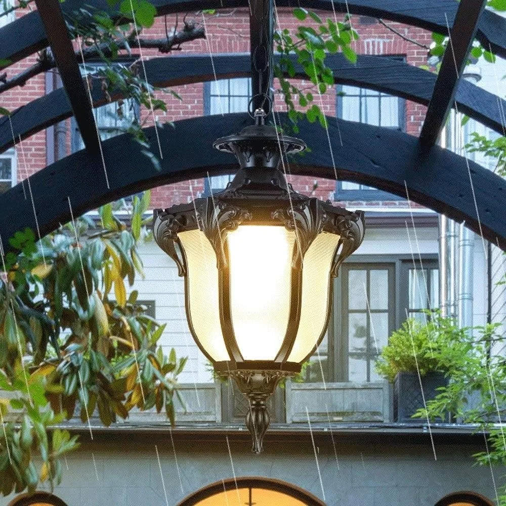 Elevate your outdoor spaces with timeless elegance using our Outdoor Decorative Black Finish Pendant Hanging Light. Crafted with a vintage-inspired antique brass finish and clear glass enclosure, this hanging ceiling lamp exudes charm and sophistication—perfect for patios, porches, doorways, or cafés. The warm white glow creates a welcoming ambiance, making it ideal for cozy evenings and stylish gatherings. Designed for durability as well as style, this weather-resistant pendant light combines classic aesthetics with modern reliability. Whether enhancing the rustic charm of your café or adding a touch of vintage luxury to your home exterior, this piece is a standout feature day or night.
