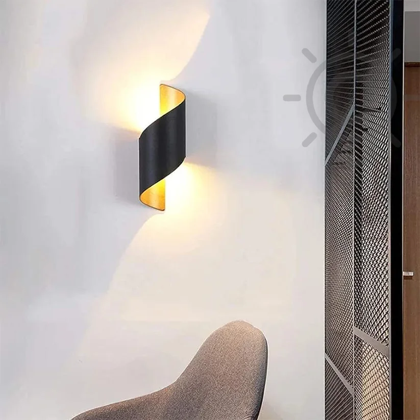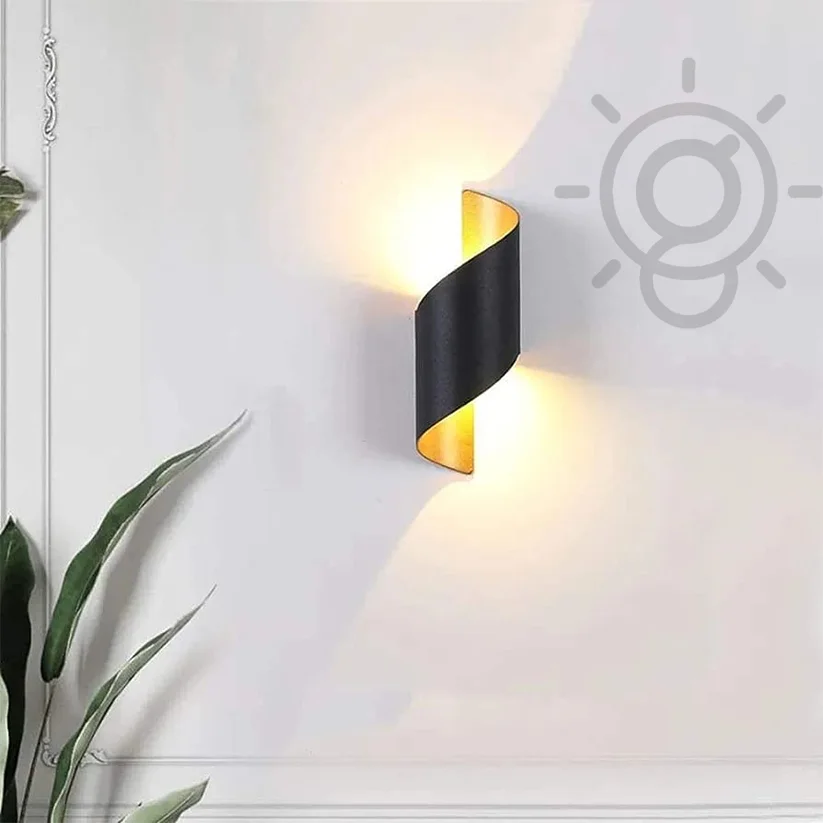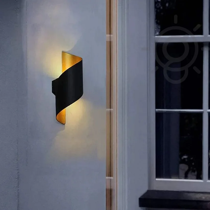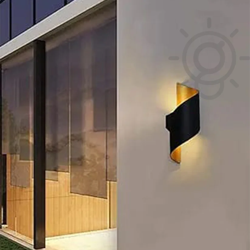 Outdoor Up Down Black Golden Aluminium Body Spiral Wall Light Waterproof - Warm White