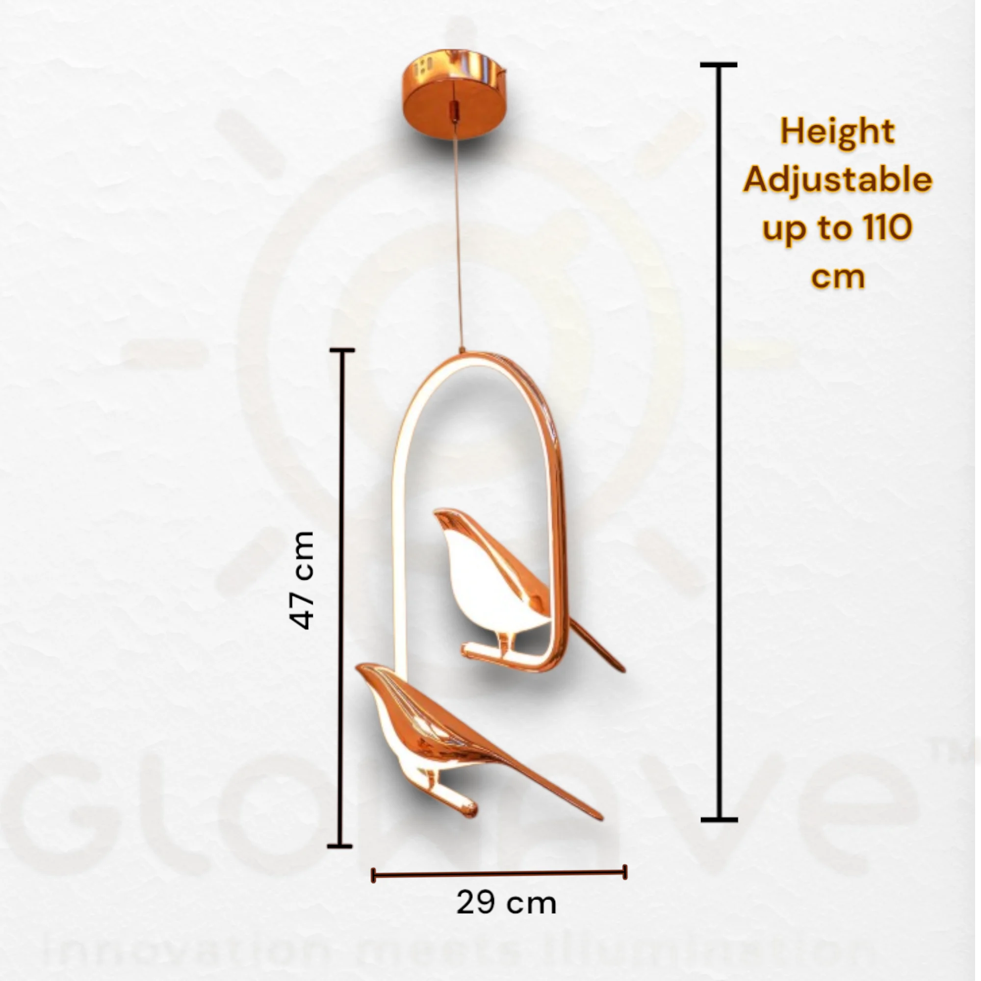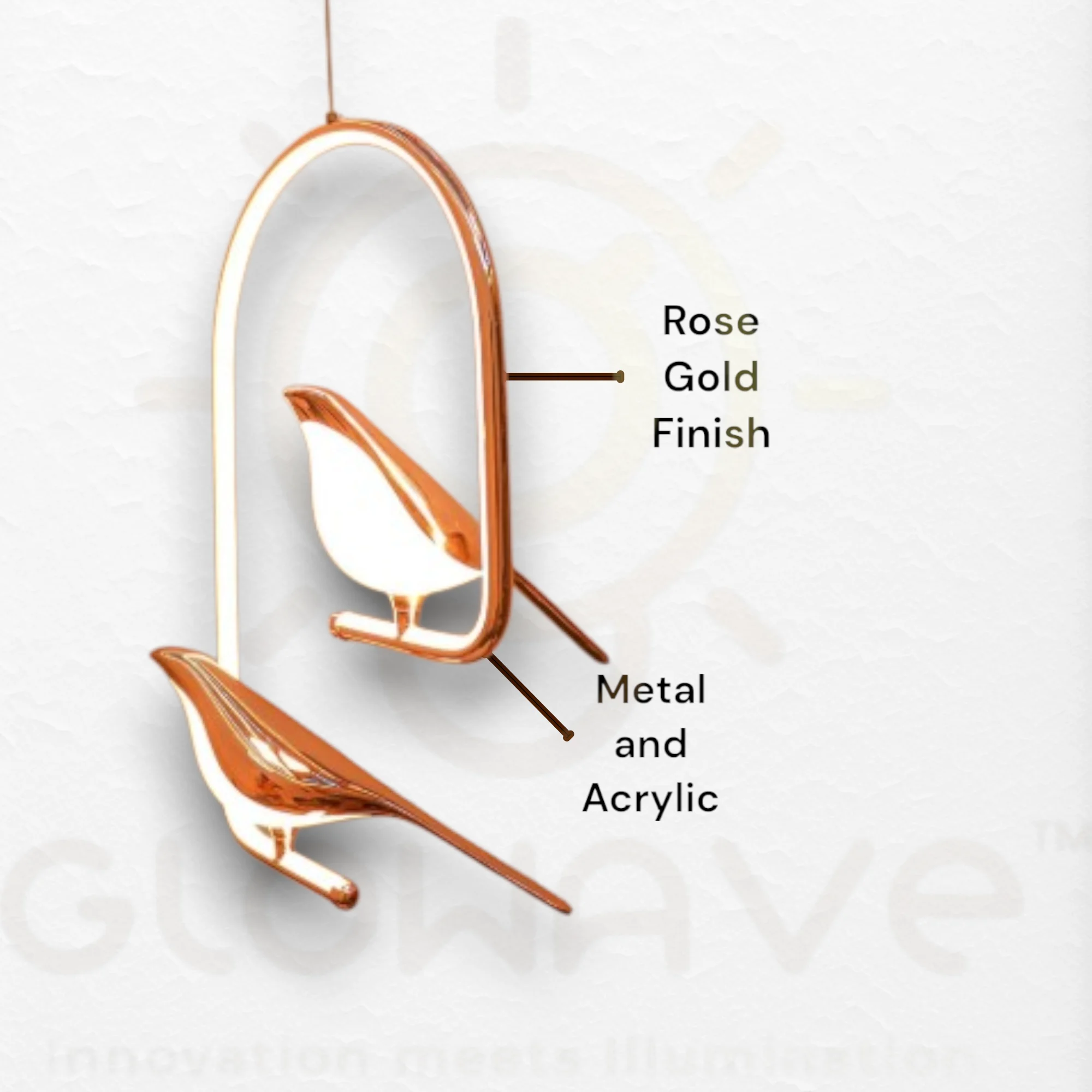 Oval Bird Rose Gold Pendant/Hanging Light - Tricolour (2 Bird)