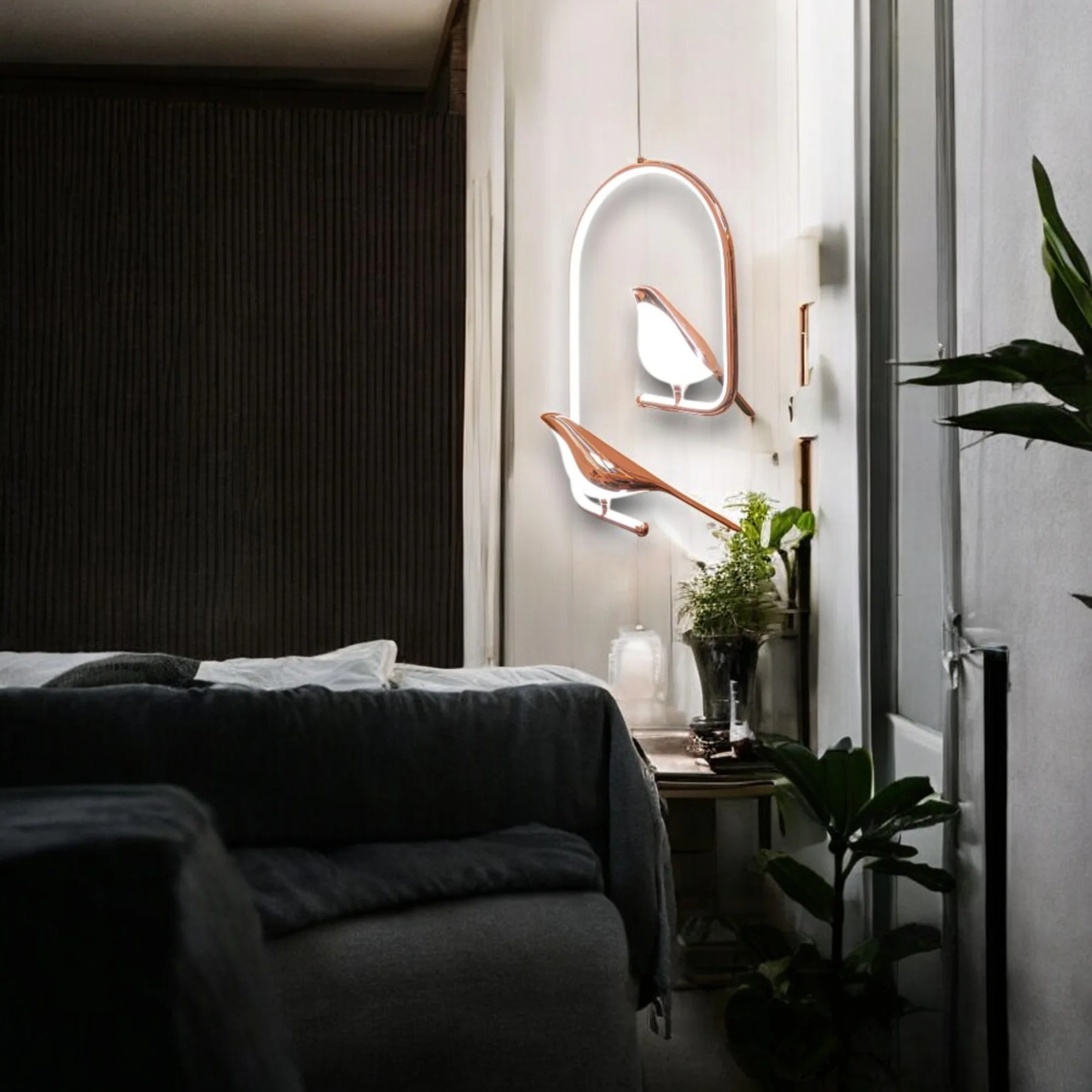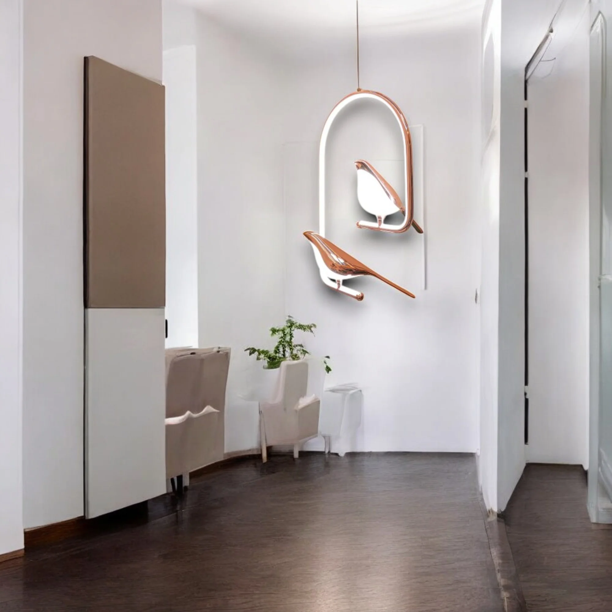 Elevate your home décor with the exquisite Modern Rose Gold 2 Birds LED Chandelier Light. Perfect for parlors, bars, and bedside illumination, this novelty light fixture offers 360-degree lighting, ensuring every corner is bathed in a warm, inviting glow. The unique golden bird design adds a touch of elegance and whimsy, making it a standout piece in any room. Crafted with energy-efficient LED technology, this chandelier provides long-lasting, brilliant light while minimizing energy consumption. Ideal for those seeking a blend of style and functionality, this modern chandelier is a stunning addition to any contemporary home.