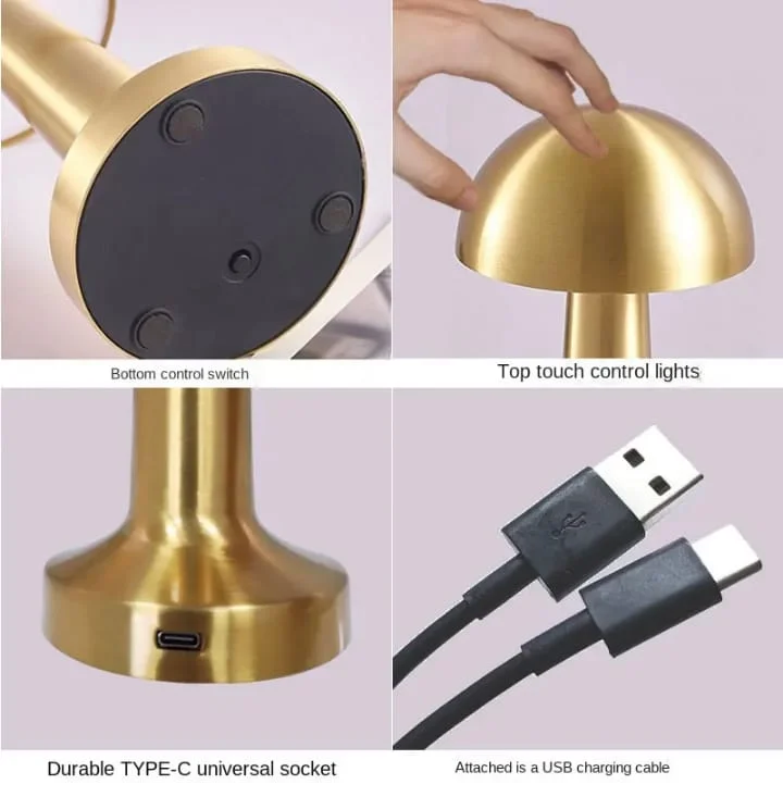 Illuminate your space with elegance and functionality using the Glowave Portable LED Mushroom Table Lamp. With a sleek, mushroom-inspired design, this wireless lamp brings a soft glow to any setting — from cozy bedside corners to elegant dining tables. Featuring a built-in touch sensor with 3 color modes (Warm, Neutral, and Cool White), it adapts to your mood with a simple tap. The dimmable brightness offers personalized comfort, while the rechargeable "C" type USB port ensures hassle-free, cordless use. A modern blend of form and function — perfect for contemporary living.