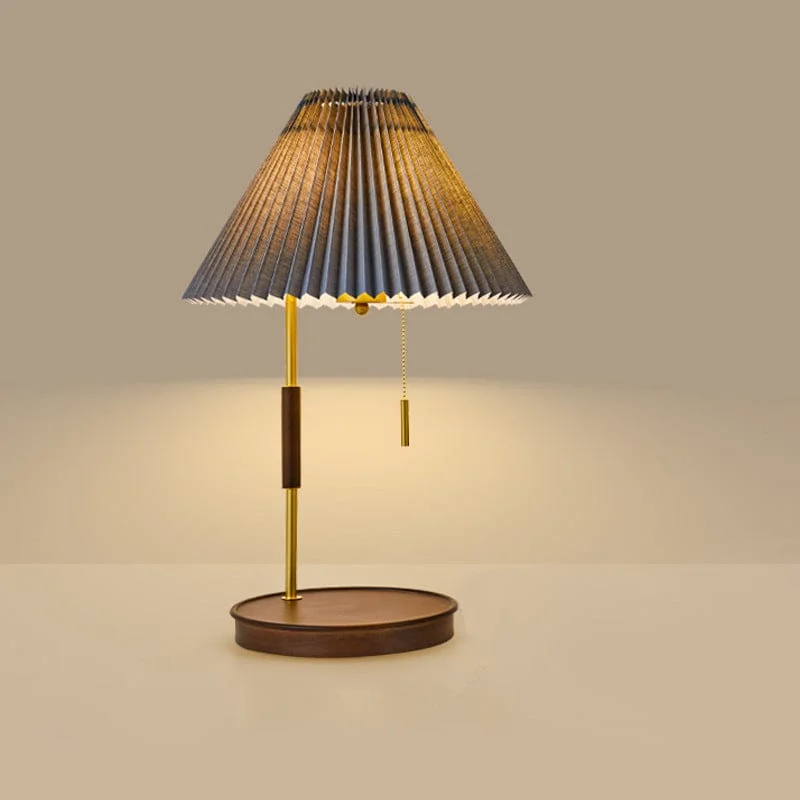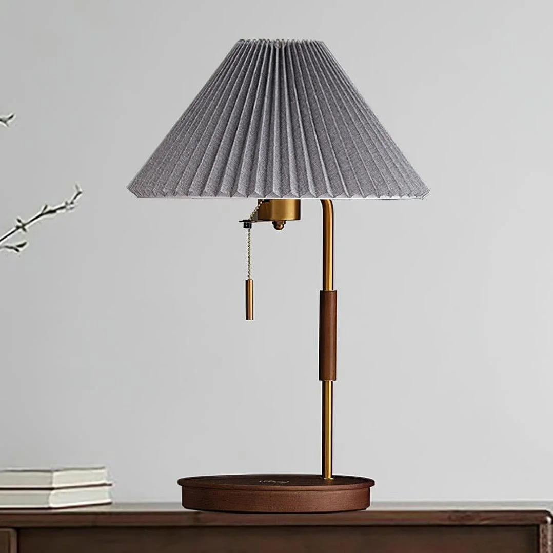 Retro Desk Lamp Pleated Fabric Lamp Cover with Pull Chain - Warm White (Grey T-2032)