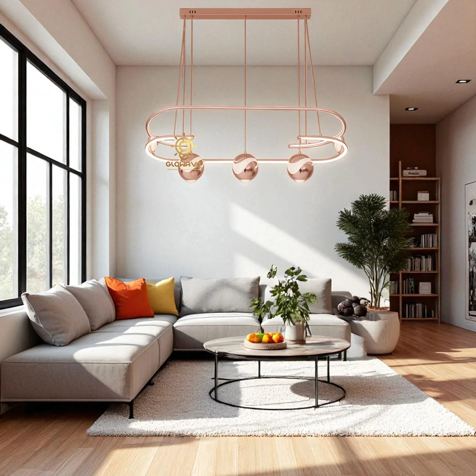 Elevate your space with the Modern LED Metal 1200mm Rings Rose Golden Pendant Chandelier Light. Perfect for kitchens, cafes, and dining bars, this stunning fixture offers tricolour lighting options: Warm White, White, and Natural White. The sleek Rose golden metal design adds a touch of elegance and modernity, making it a versatile and stylish choice for any setting. Ideal for contemporary interiors, this chandelier enhances ambiance while providing efficient LED lighting. Transform your space with this exquisite hanging light today!