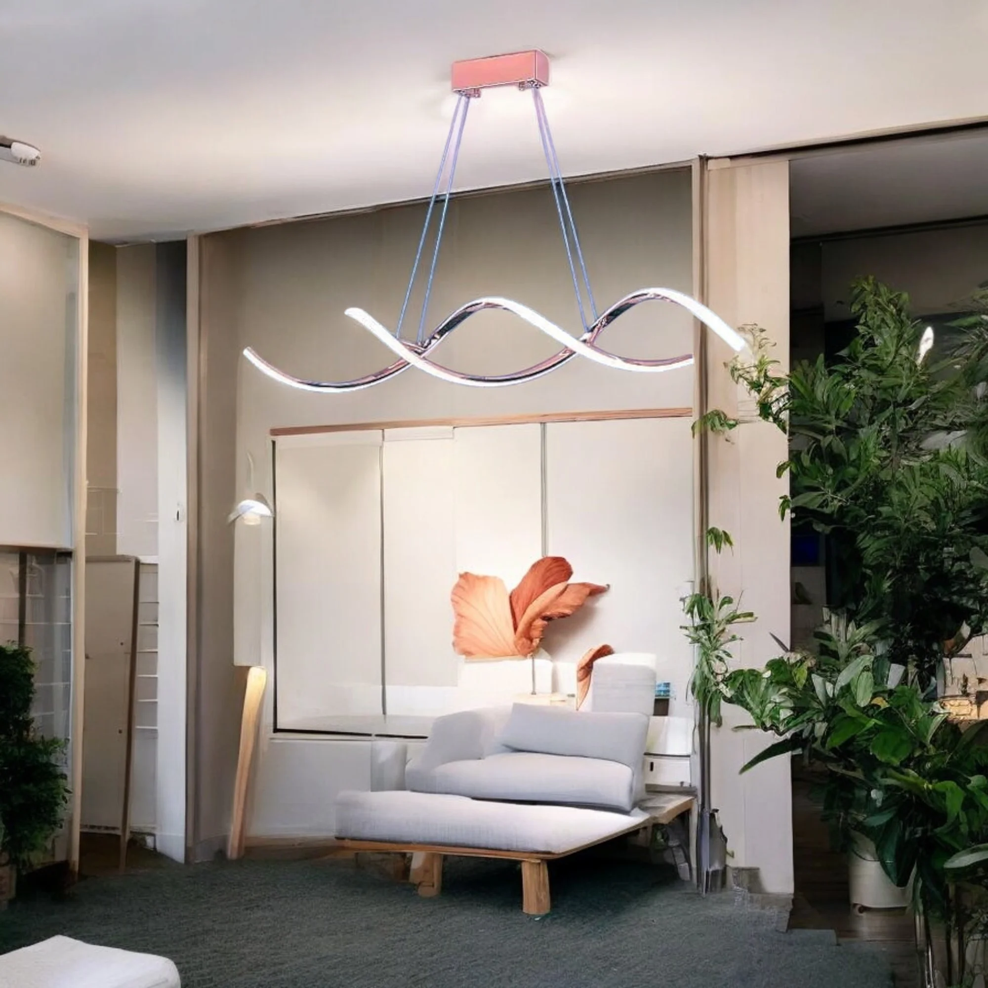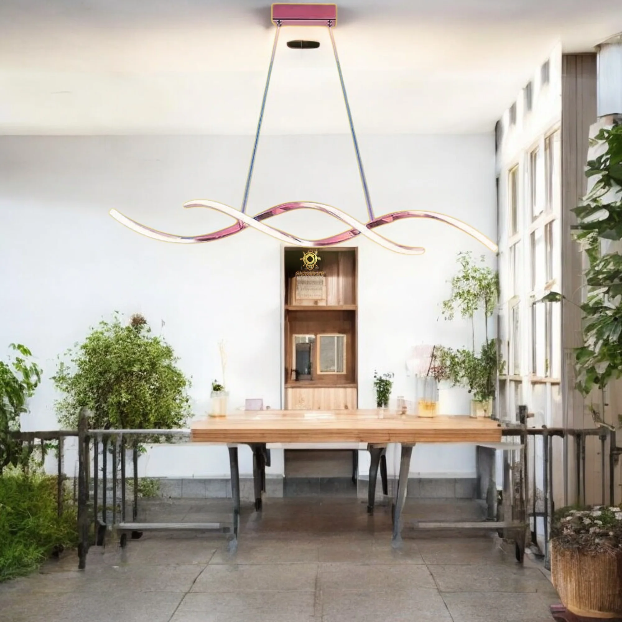Black LED Wavy Metal Profile Light Pendant Chandelier - Tricolour