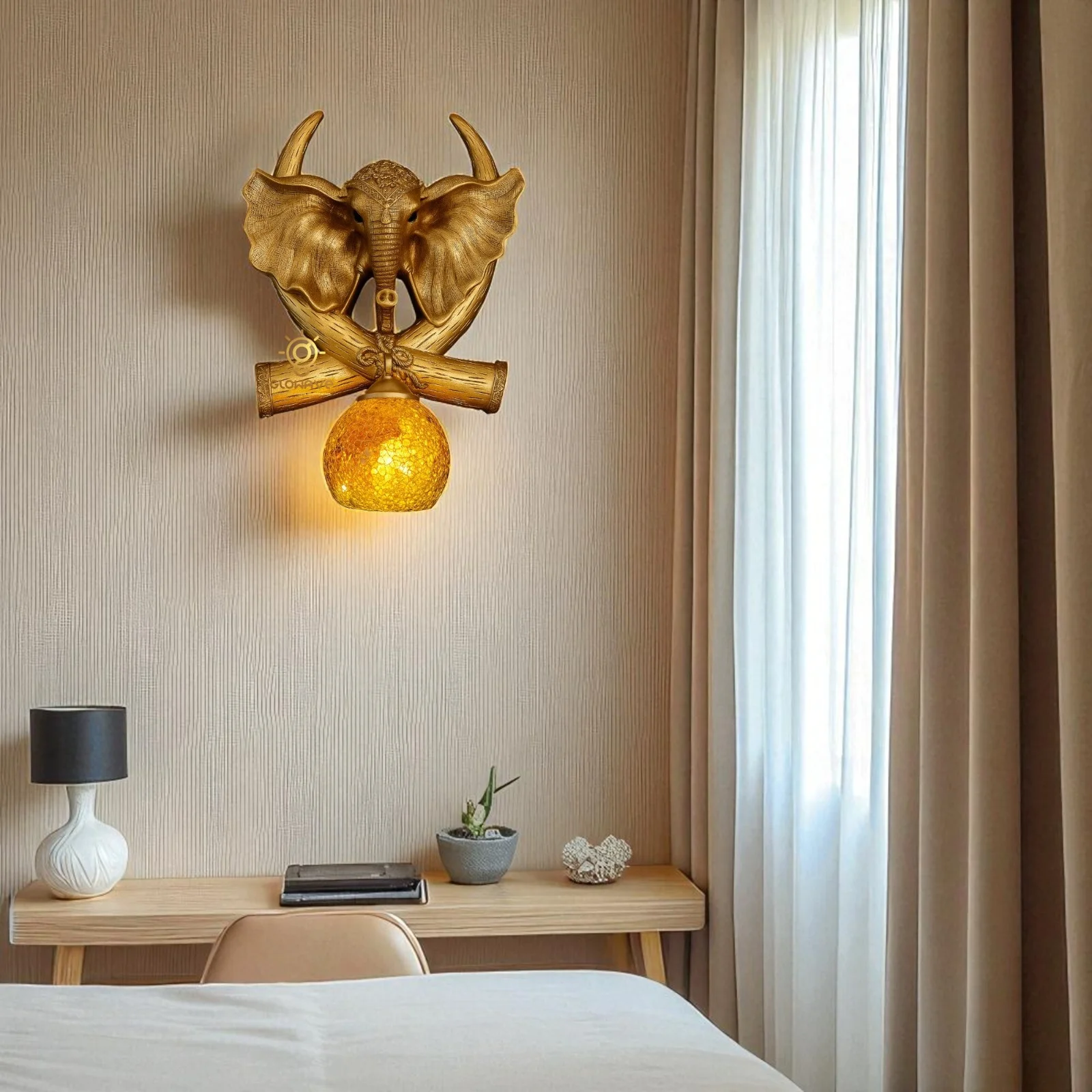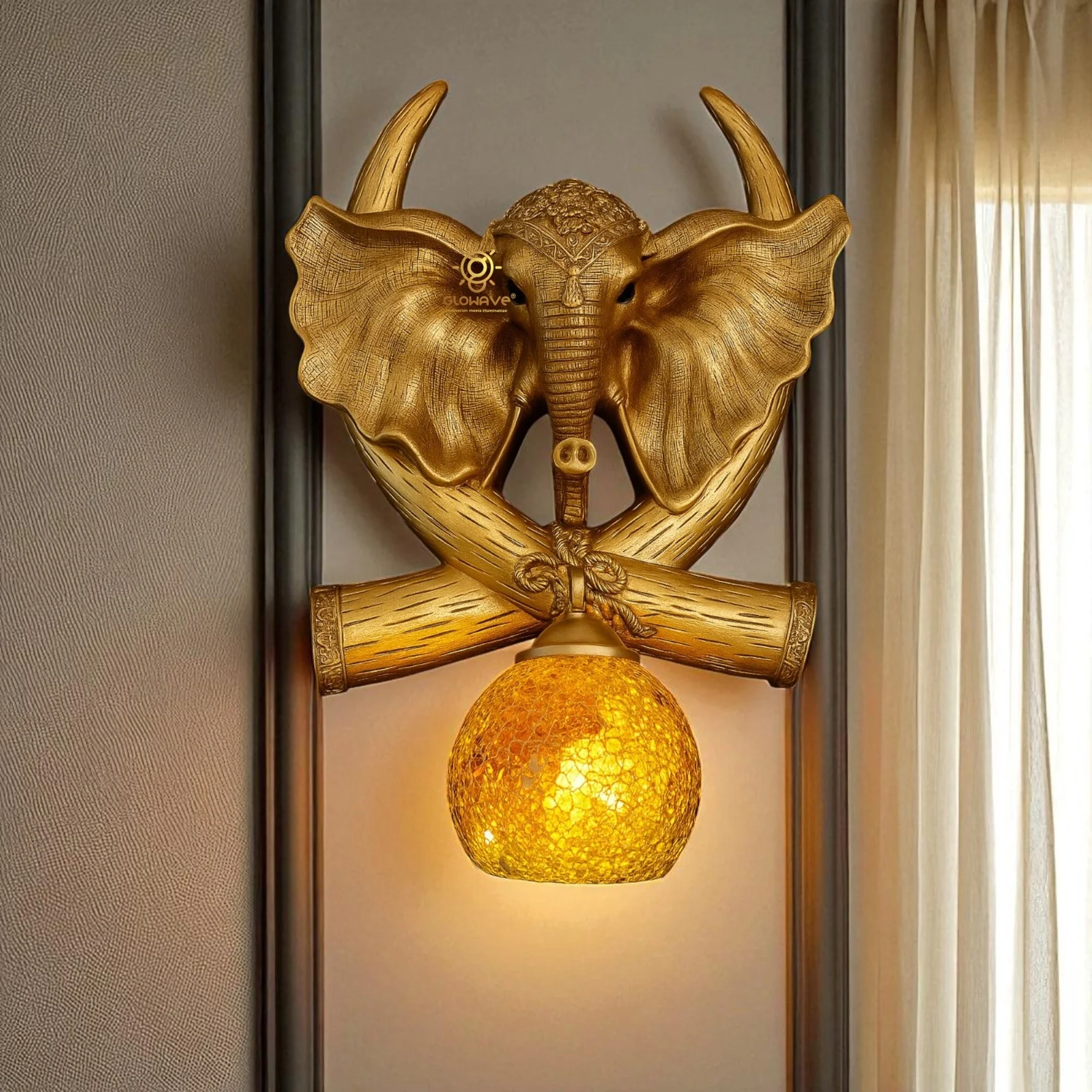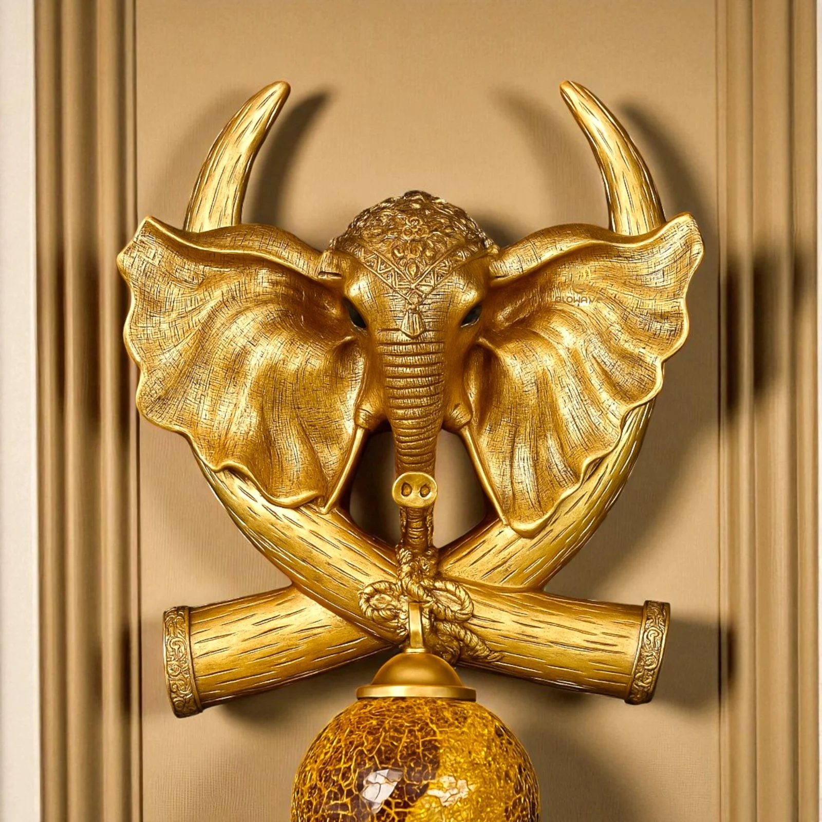 Illuminate your space with the Royal Elephant Head Resin Golden Wall Lamp, perfect for living rooms, bedrooms, and bedsides. This exquisite warm white lamp features a majestic elephant head design, adding a touch of luxury and elegance to any decor. Crafted from high-quality metal with a stunning golden finish, it provides a warm, inviting glow that enhances the ambiance of your home. Ideal for those seeking a blend of sophistication and functionality, this wall lamp is a statement piece that elevates your interior design.