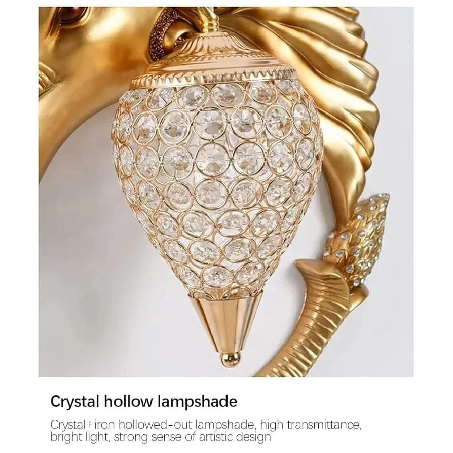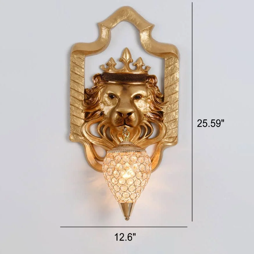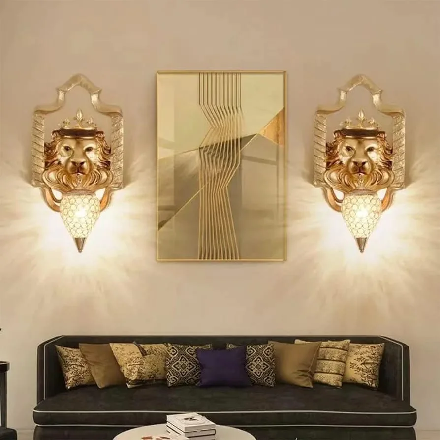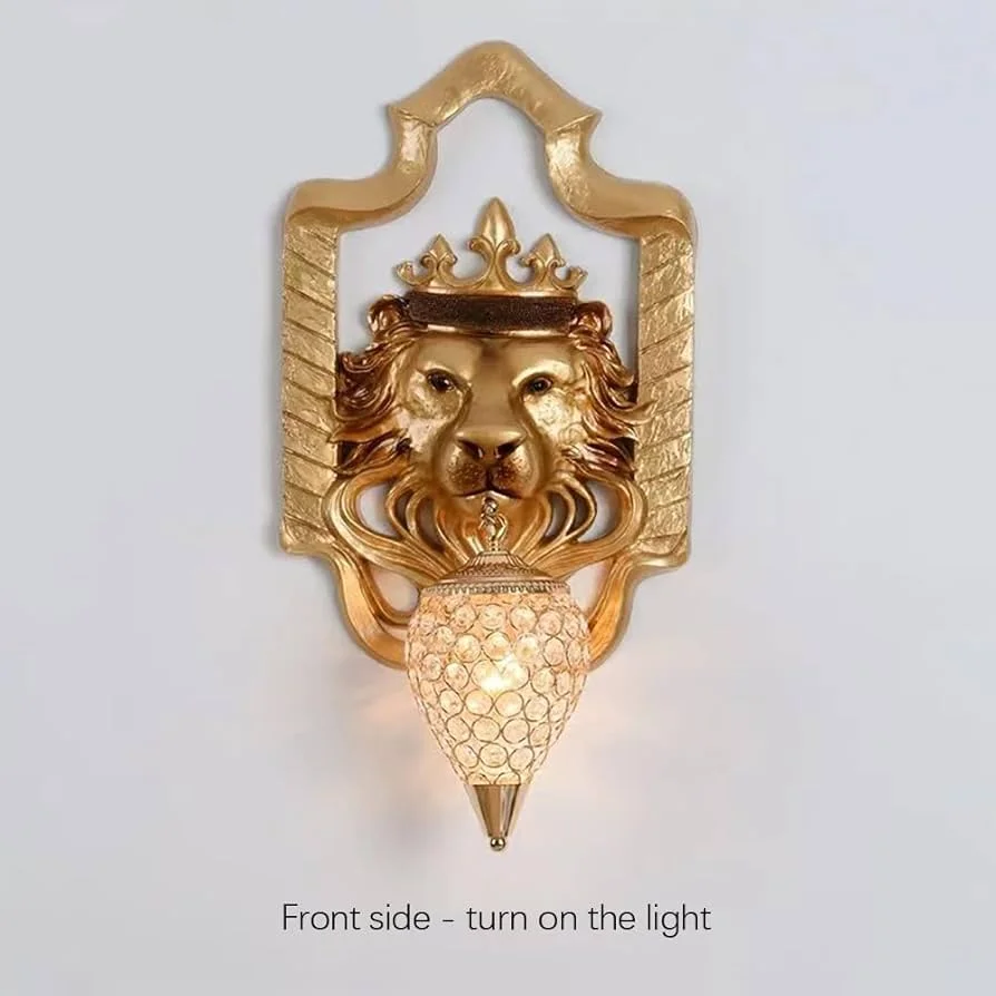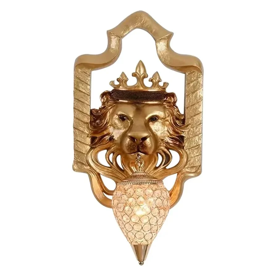 Illuminate your space with the Royal Lion Head Resin Golden Wall Lamp, perfect for living rooms, bedrooms, and bedsides. This exquisite warm white lamp features a majestic lion head design, adding a touch of luxury and elegance to any decor. Crafted from high-quality metal with a stunning golden finish, it provides a warm, inviting glow that enhances the ambiance of your home. Ideal for those seeking a blend of sophistication and functionality, this wall lamp is a statement piece that elevates your interior design.
