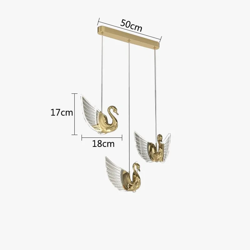 Royal LED Gold Set of 3 Swans Bedside Pendant Hanging Light Ceiling Lamp - Tricolour Light